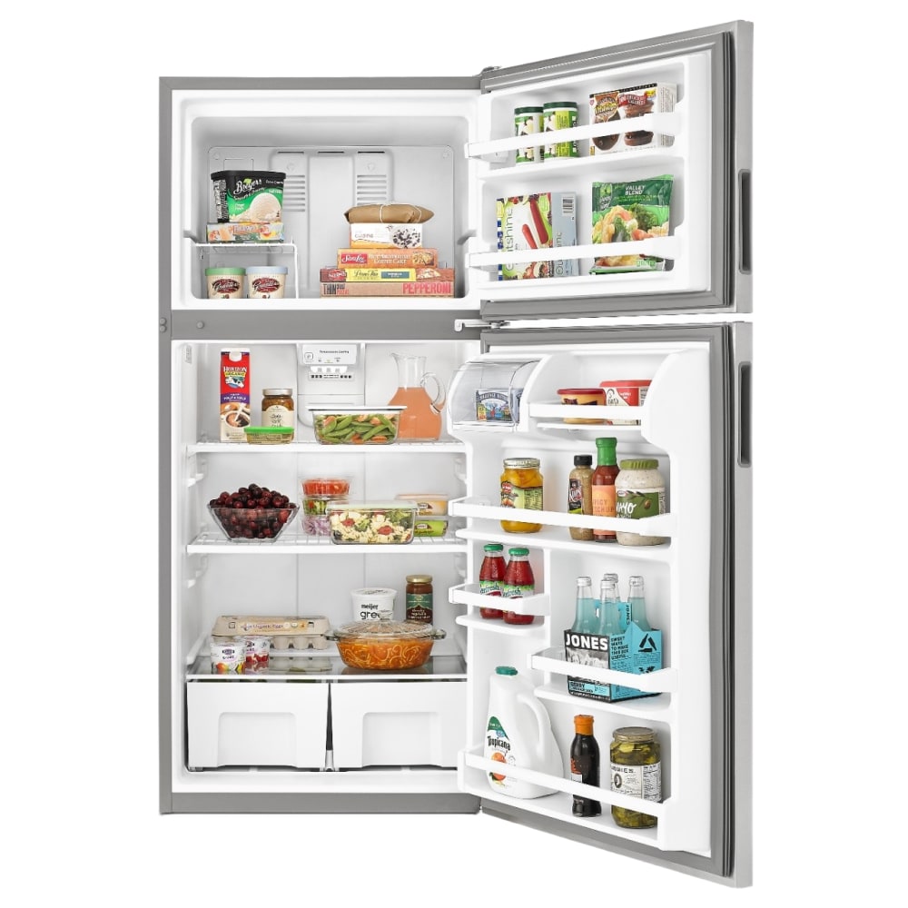 Top-freezer refrigerators also come in a variety of colors. One is sure to complement your décor. Options range from bisque or black to metallic or standard white, among others.