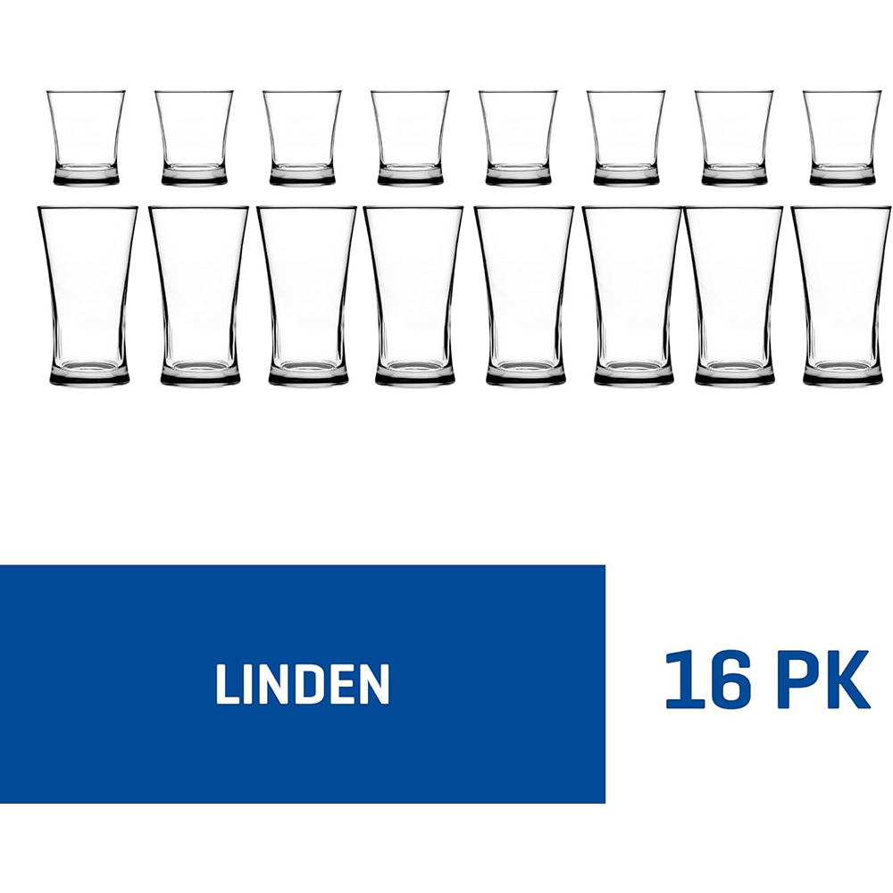 Finlandia Drinking Glasses, 16 Piece Set, (8) 12 Ounce, (8) 16 Ounce, Clear Glass