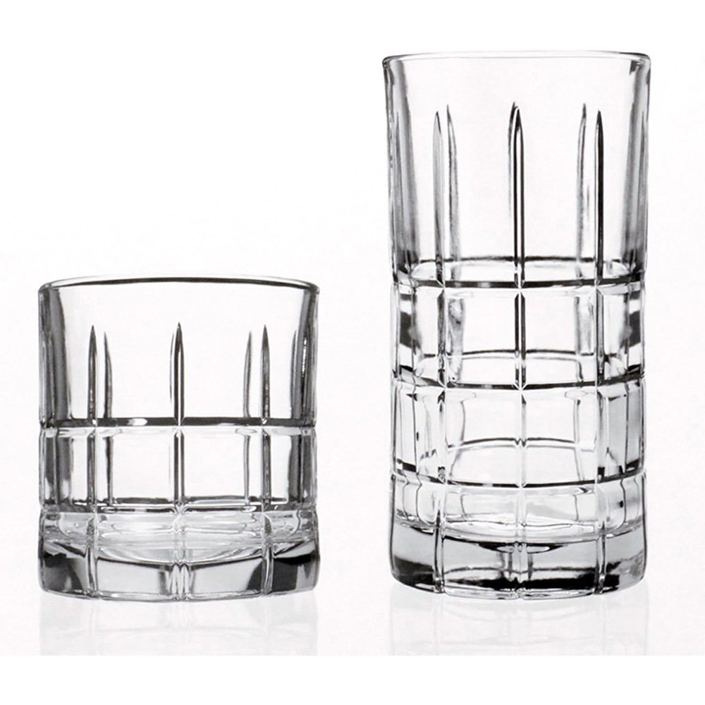 Anniston Drinking Glasses Set 16 Piece Set (8 Rocks Glasses & 8 Tumbler Glasses)