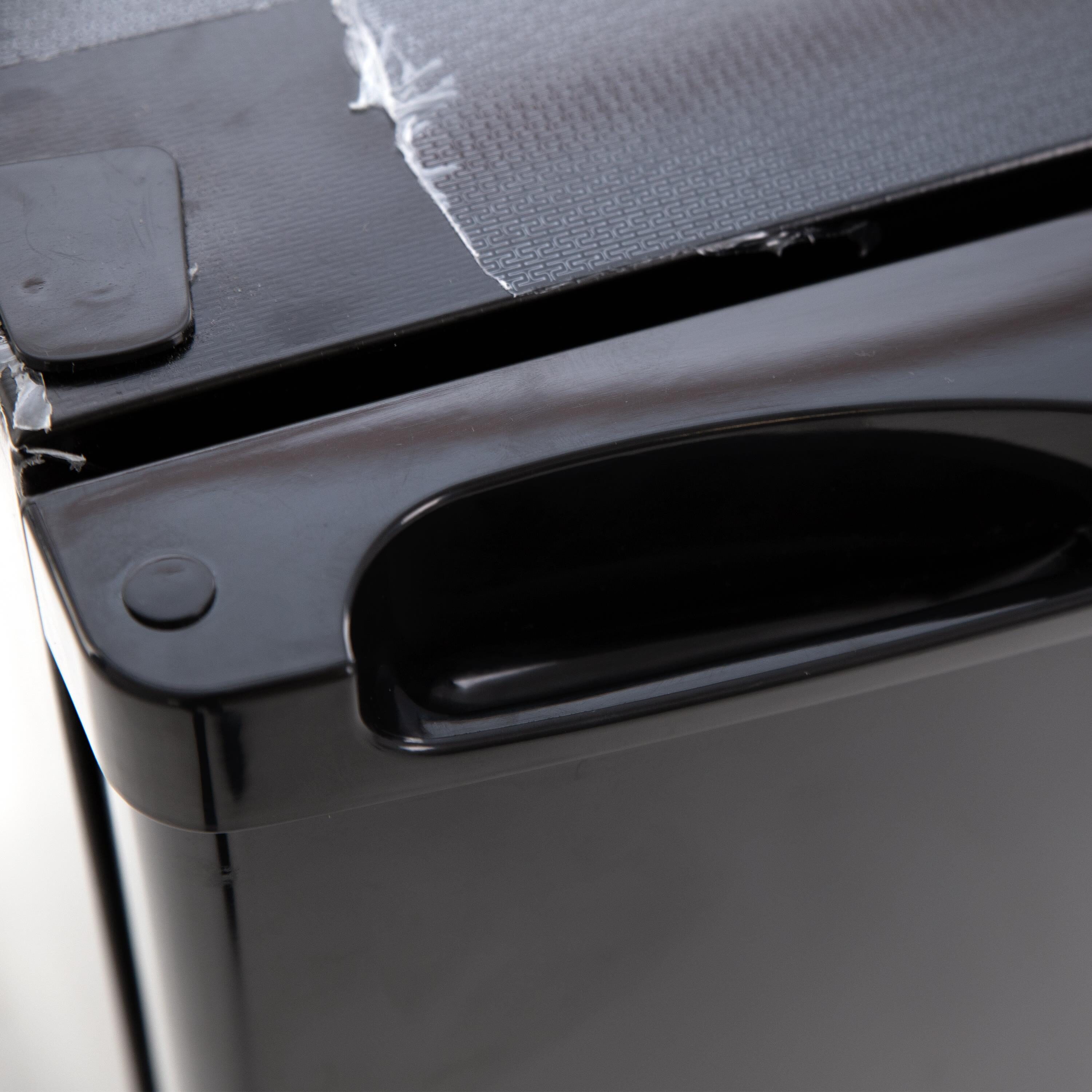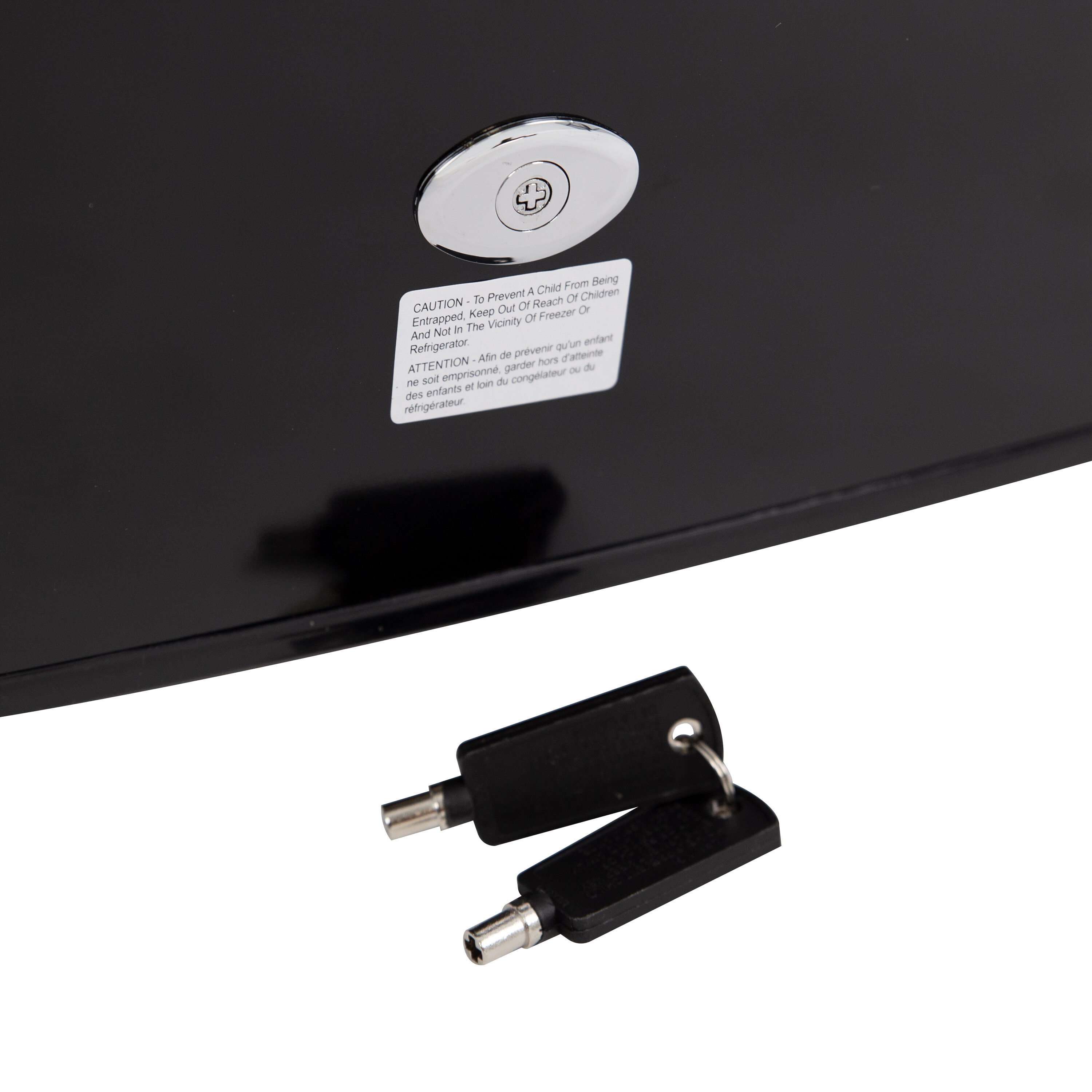 Keep your snacks and favorite beverages close by in the compact, 4.4 cubic foot refrigerator from Avanti. The perfect lockable mini fridge for the office, dorm, man cave, she shed, bar, bedroom, or anywhere you need a little extra refrigerator space. The door shelves can accommodate 2 liter and gallon bottles and six 12 ounce cans, as well as other drinks and condiments. Use the adjustable, removable glass shelving to arrange salads, fruits, snacks, and other foods for easy access throughout the day. This compact fridge features automatic defrost so your foods remain fresh and cold. Select the right settings for your items with the full range temperature control.