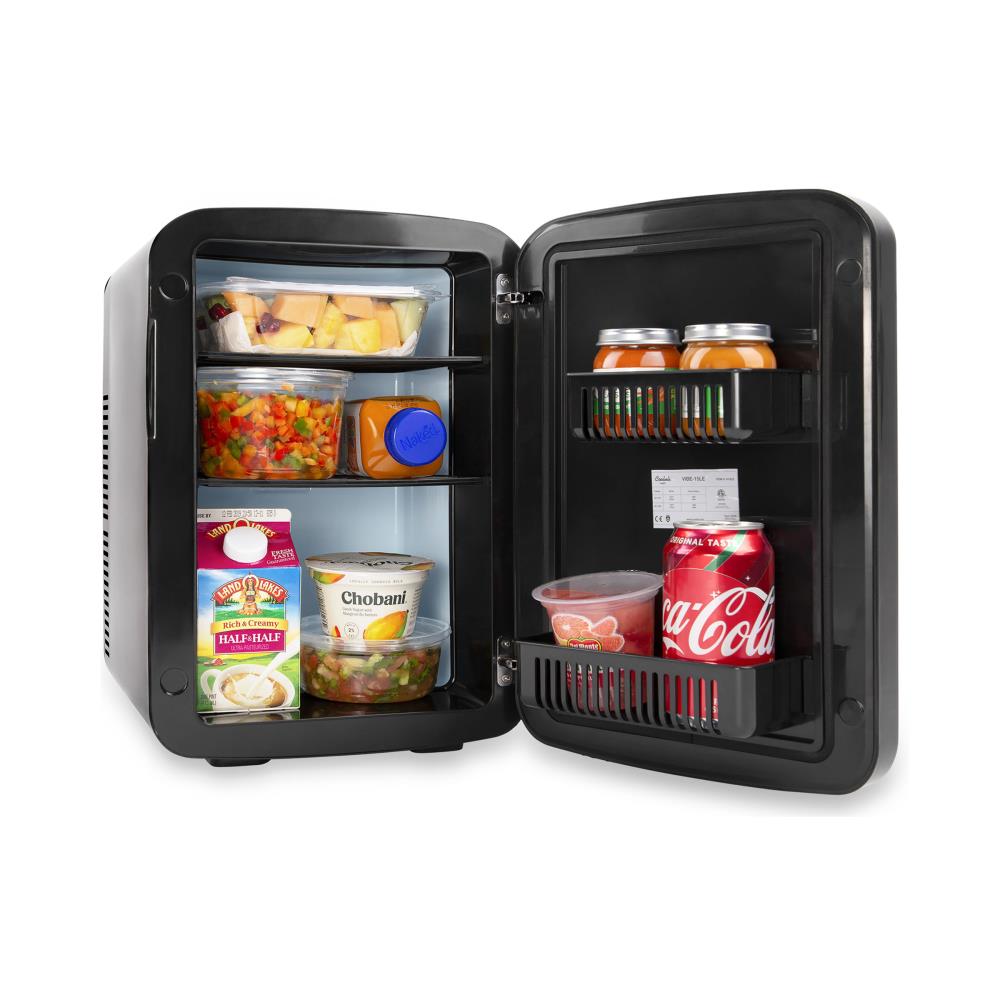 ULTRA-VERSATILE + FUNCTIONAL: Use the Vibe-15LE compact cooler/warmer mini-refrigerator to store food, drinks, breast milk, insulin, skincare products, medications and other essentials
