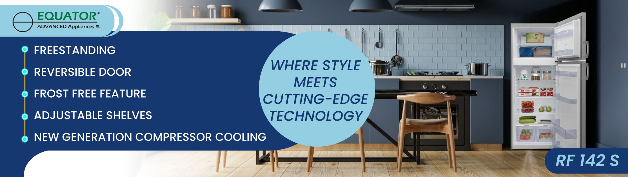 The Equator Top Mounted RF 142 S Refrigerator delivers sleek style and innovative cooling technology, making it an ideal energy-efficient addition to any kitchen. At its core, a new generation compressor cooling system ensures optimal food preservation by blowing dry, cold air that evenly cools and minimizes humidity, across its 10.8 cu. ft. refrigerator and 3.5 cu. ft. freezer compartments. For maximum storage flexibility, the unit features two crisper drawers, 4 adjustable shelves, and a reversible door, allowing for left- or right-handed use. Further enhancing convenience are four refrigerator door shelves, including a 2-liter gallon-sized rack, one glass freezer shelf, and two freezer door shelves. Measuring 68.1 inches in height, 27.5 inches in width, and 28.3 inches in depth, this appliance is equipped with adjustable feet for easy leveling to ensure a perfect fit in any space. Operating on 110V/60Hz/1.84A with R600a refrigerant, this 14.3 cu. ft. capacity appliance comes with Equator’s one-year parts and labor warranty.