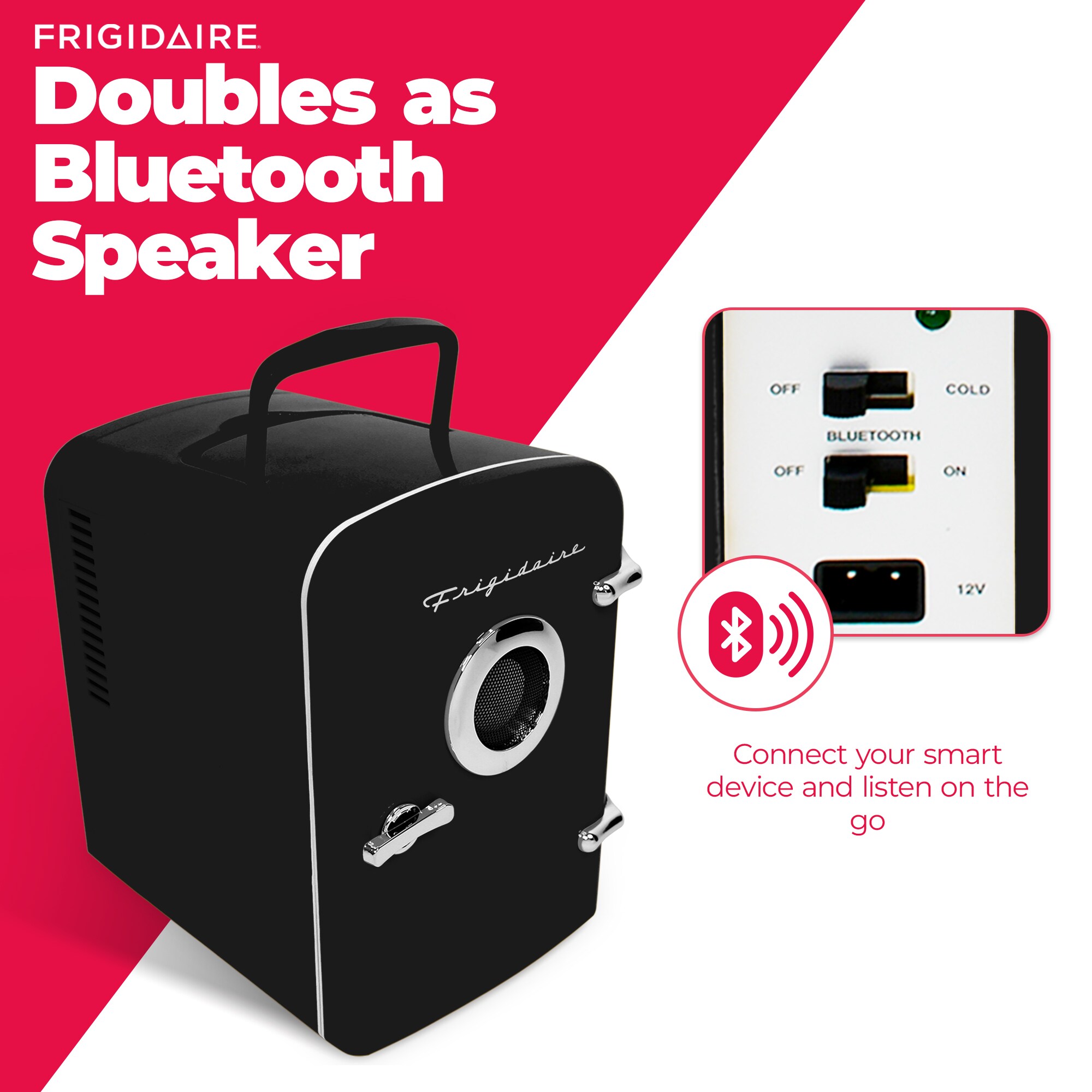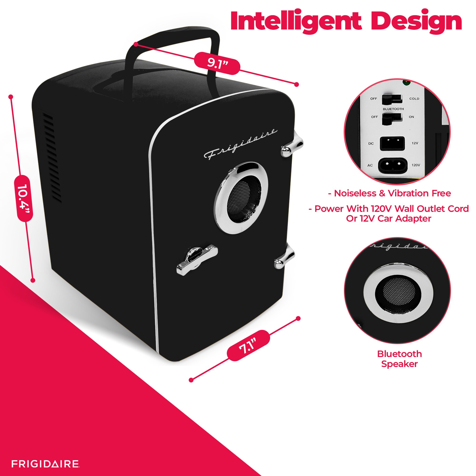 4 Liter capacity chills six 12 ounce soda cans and includes removable shelf so you can store small items