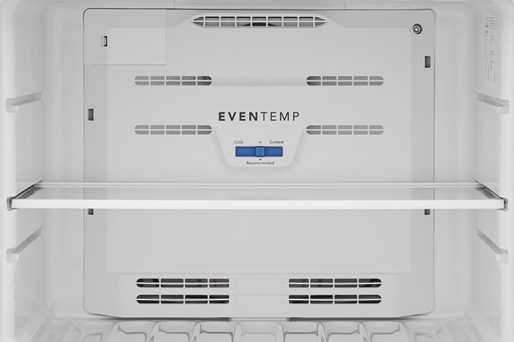 The Frigidaire 20 cubic foot top freezer refrigerator fits in the same sized cutout as a traditional 18 cu. ft. model. This refrigerator features the EvenTemp™ Cooling System, precise temperature control which keeps food at one ideal temperature. Spacious interior storage options include generous door bins and a full-width glass freezer shelves.