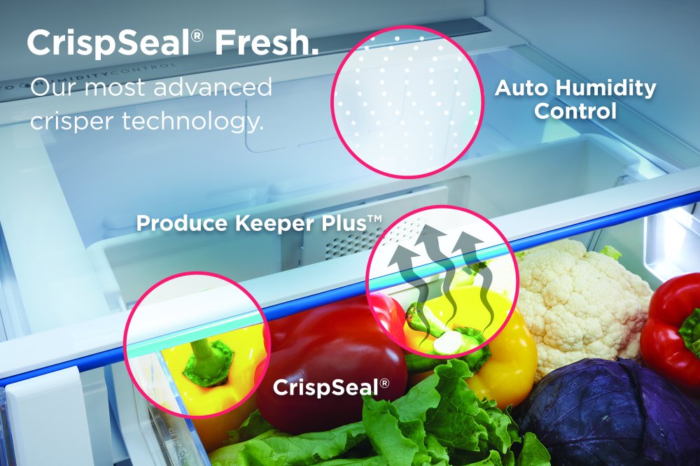 Our 3 advanced technologies block out dry air, automatically optimize humidity while removing excess moisture, and our built-in antioxidant filter reduces ethylene gas, oOur 3 advanced technologies block out dry air, automatically optimize humidity while removing excess moisture, and our built-in antioxidant filter reduces ethylene gas, odors and preserves produce color
