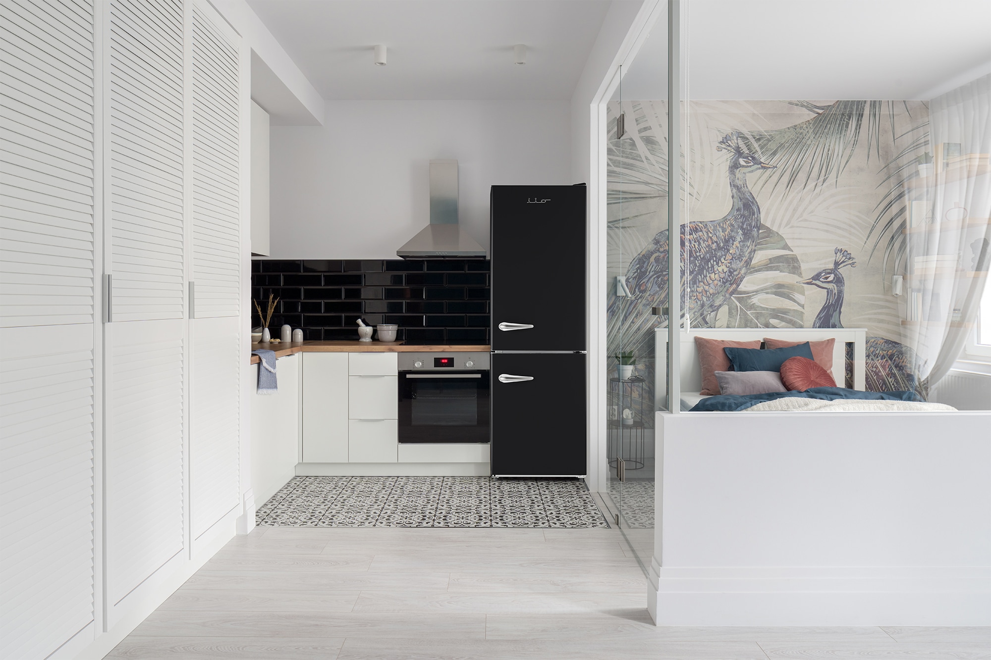 It’s cool, it’s stylish, it’s fun. This retro-modern slim refrigerator has a surprising amount of adjustable space and square sides for side-by-side installation. With bright LED illumination, 3 safety glass shelves, a convenient frost-free top fresh food area and bottom freezer, the iio RM1 comes in gorgeous wine red, black, cream, white, and light blue color options to fit any decor. Truly where style meets function. This 11 cu. ft. Retro-Mod compact fridge offers a future-friendly blend of nostalgic design and modern angles, packed with the latest technology. The electronic controls are easy to reach and easy to use, allowing you to quickly activate the Fast Cool feature that rapidly chills the refrigerator compartment and your freshly-stocked groceries. Frost free and with Multiflow 360° technology that circulates cool air more efficiently around every shelf, through every drawer, and over every surface, keeping your food at the ideal temperature, a large bottom freezer, bright LED lighting, and 3 rollout freezer drawers all enable even the smallest space in your home to reflect your luxury style. This tall skinny refrigerator comes with innovative features including chrome retro handles, a super fresh zone, and is ENERGY STAR certified. It’s perfect for tight spaces and is a slim refrigerator that’s perfectly sized for the small family home.