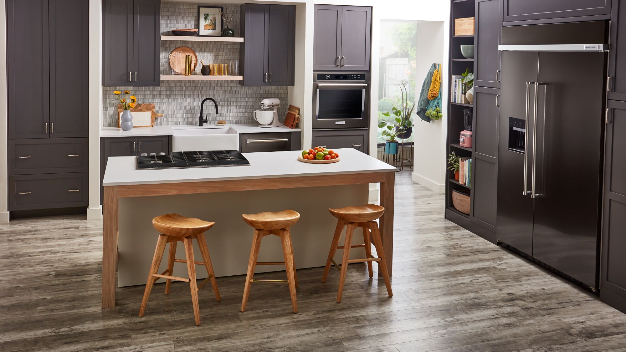 This premium 48” built-in refrigerator with exterior ice and water dispenser features PrintShield™ Finish to resist fingerprints outside, and has innovative storage inside. Like the Under-Shelf Prep Zone with included bakeware, and the moisture- and stain-resistant Wood-Look Pull Out Tray that keeps ingredients beautifully organized. Plus, optimal temperatures for ingredients are maintained with the ExtendFresh™ Plus Temperature Management System.