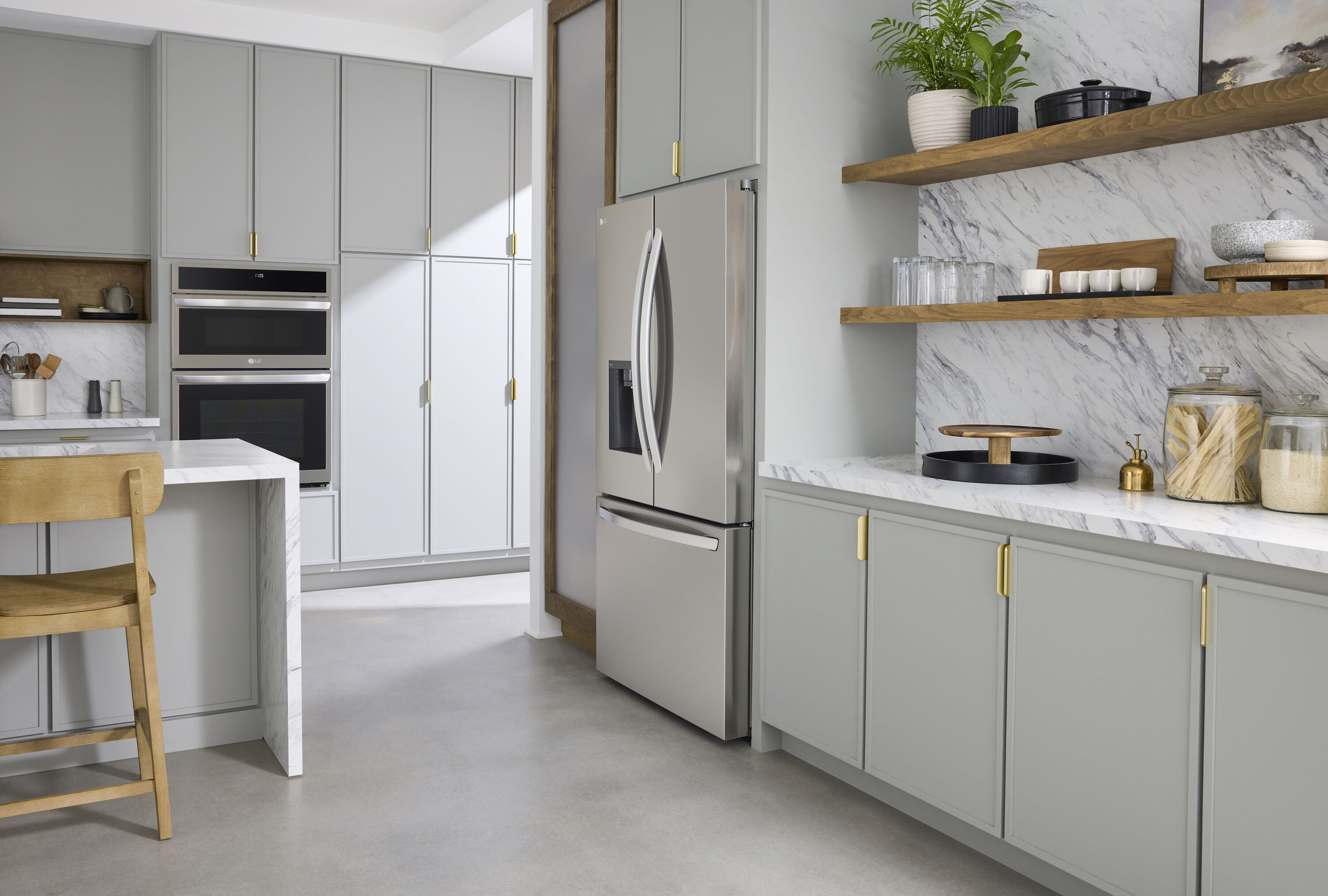 With the largest capacity in its class, at 26 cu. ft., this LG three-door counter depth refrigerator can not only stand flush with your countertop to provide a seamless look, it’s got the room to store all your family’s favorite foods.