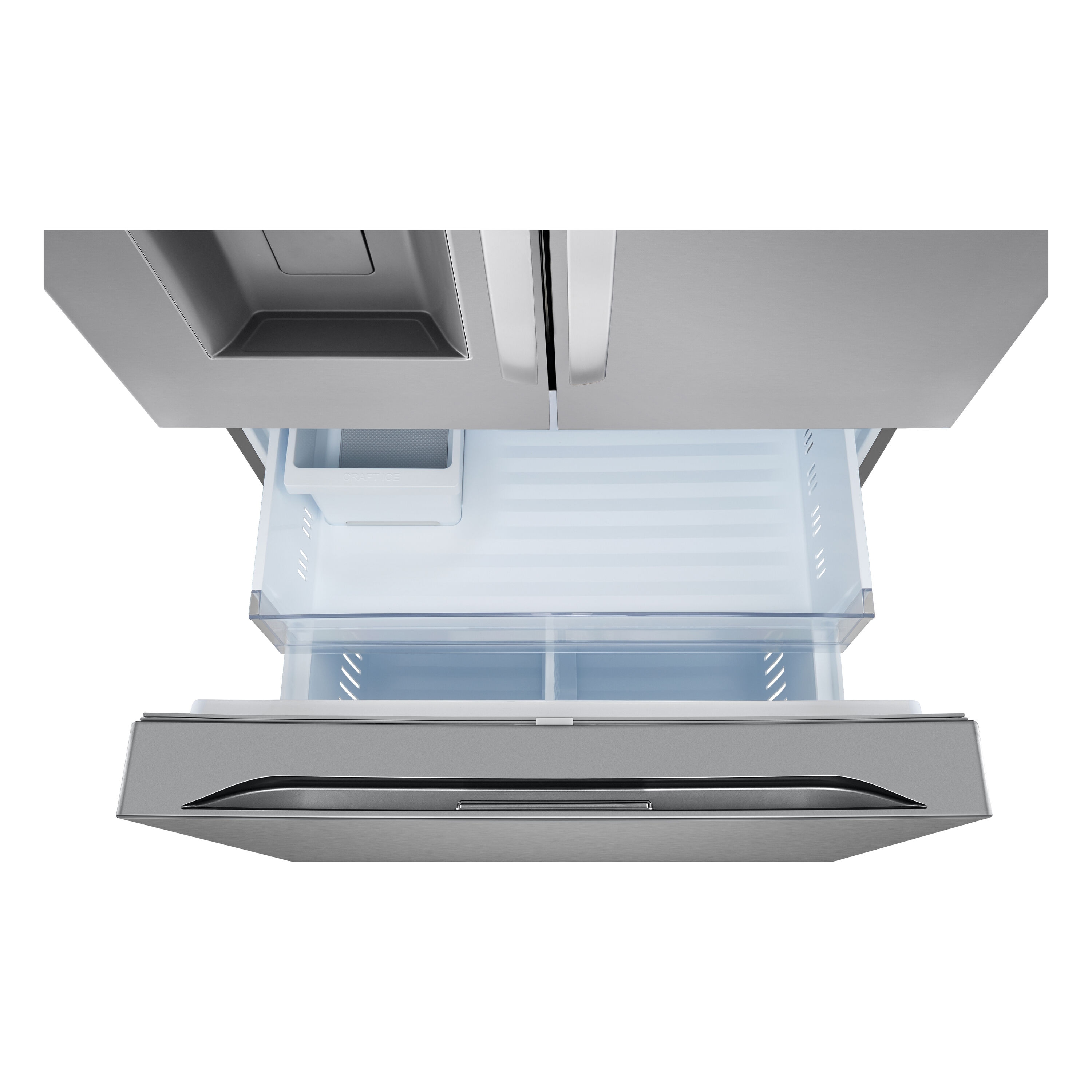 Dual ice makers automatically create standard ice cubes, crushed ice and slow-melting round craft ice for all your entertaining needs