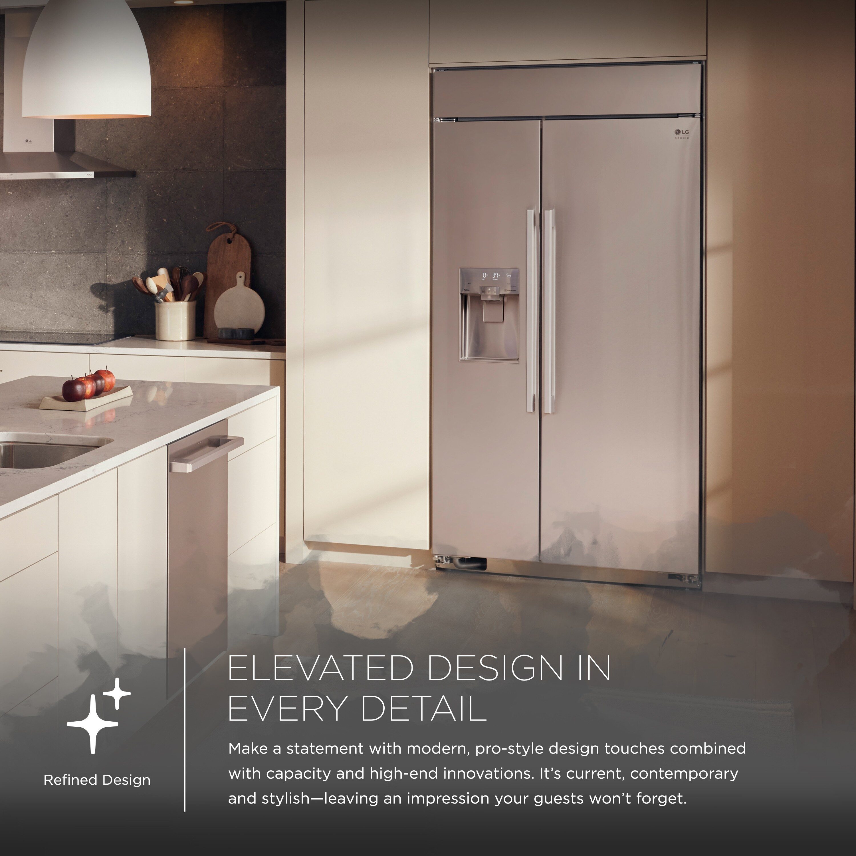 One glance and you know this is the built-in refrigerator you’ve been dreaming about. No detail has been overlooked, with flush, seamless installation, modern flat panels and handles that exude pro style. Look again and discover the all-stainless gleam of the redesigned dispenser and the shape-shifting flexibility of interior Easy Moving door bins. Performance is built-in, too, with cooling technologies designed to keep foods fresher, longer, plus the confidence of LG exclusive 2-year limited warranty.