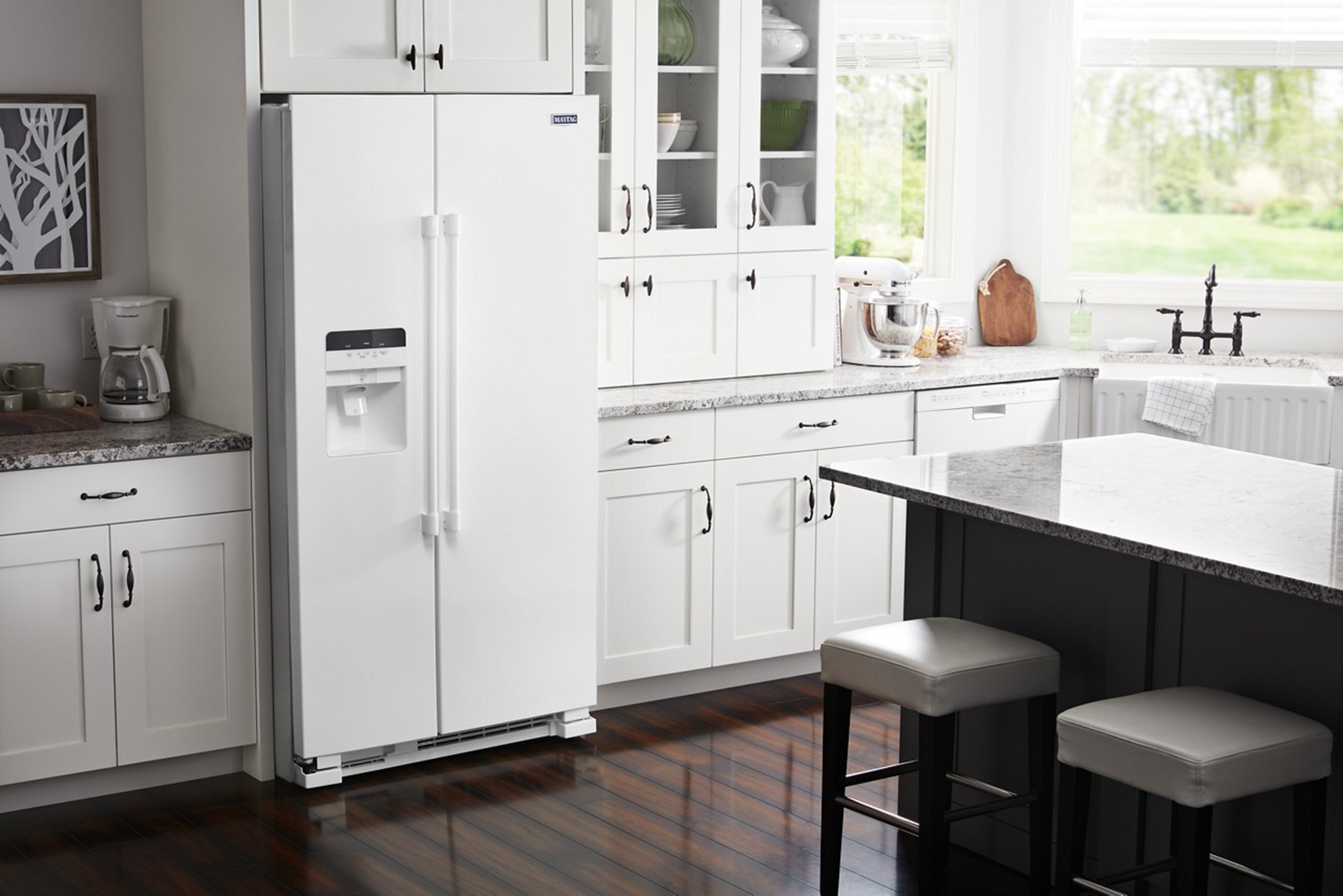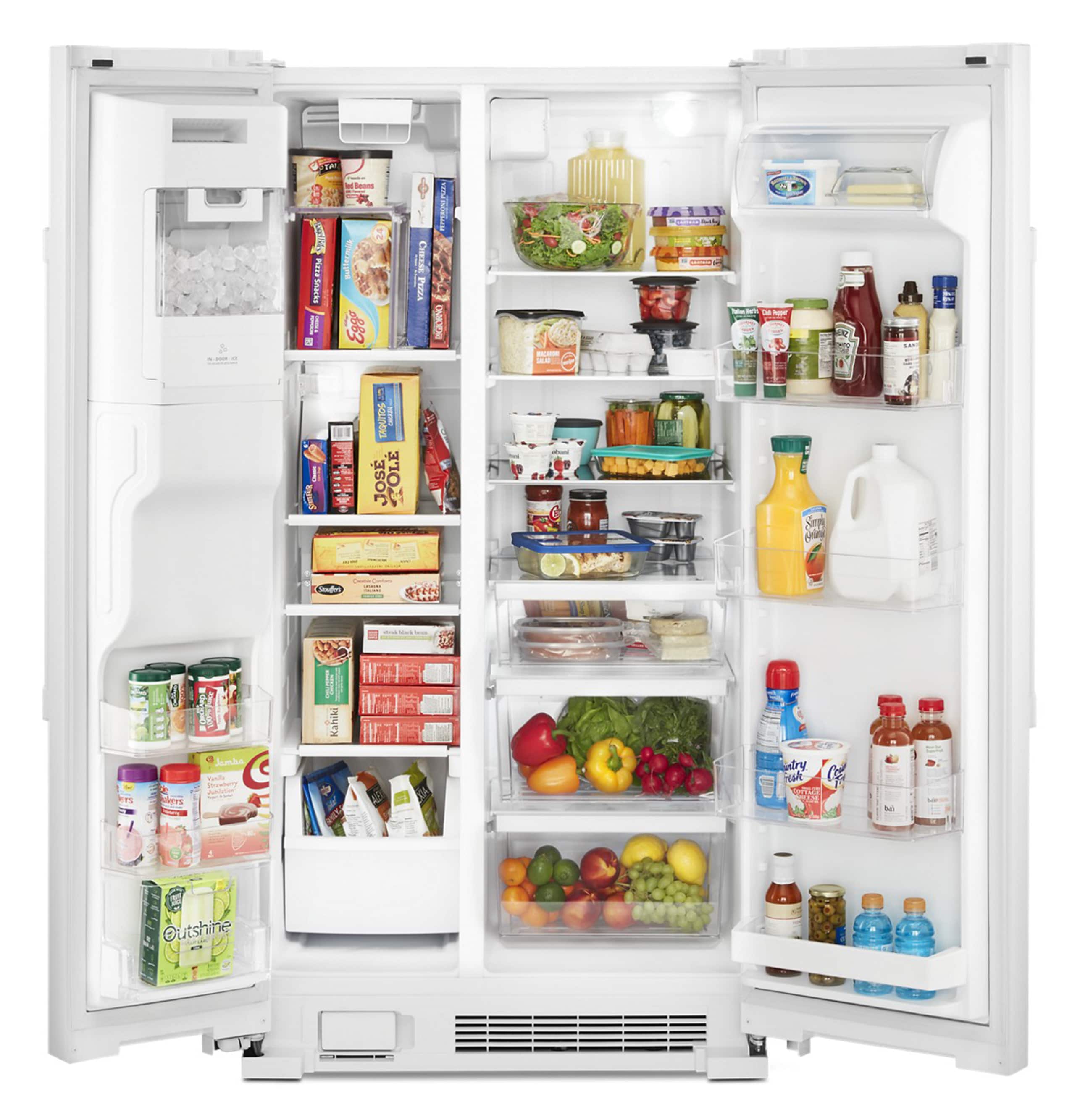 This side-by-side refrigerator is built tough and easy-to-clean. Built with plenty of storage options, including a specially designed soft freeze bin that puts you in control of the way foods freeze. Put in a pint of ice cream and it’s soft enough to scoop. Frozen pizza storage stores two frozen pizza boxes upright and out of the way, so quick meals are an easy grab. The distinct and durable Signature Maytag® metal shelf adds a bold look to the inside. With an exterior ice and water dispenser for easy access, plus a 10-year limited parts warranty on the compressor, this side-by-side fridge will keep it all cool for years and years.