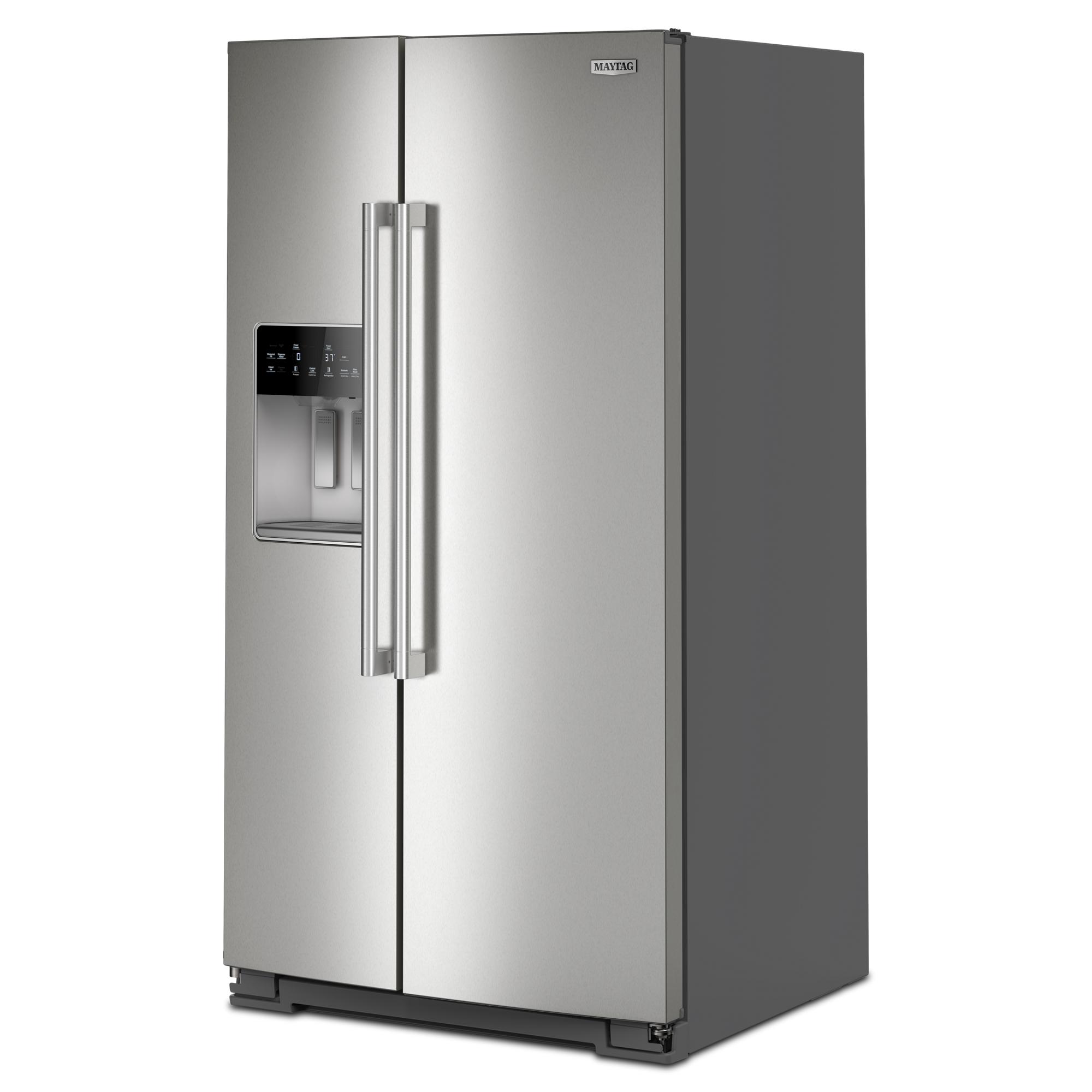 This 36-inch XL Capacity side-by-side refrigerator has ultimate cooling performance. The PowerCold® feature takes your groceries from room temp to chilly quickly, and the EvenAir Cooling System keeps everything consistently cold front to back. The LED light tower lets you see corner to corner on every shelf, all against a striking Arctic Blue Interior. All with tons of internal capacity to take on any grocery trip.