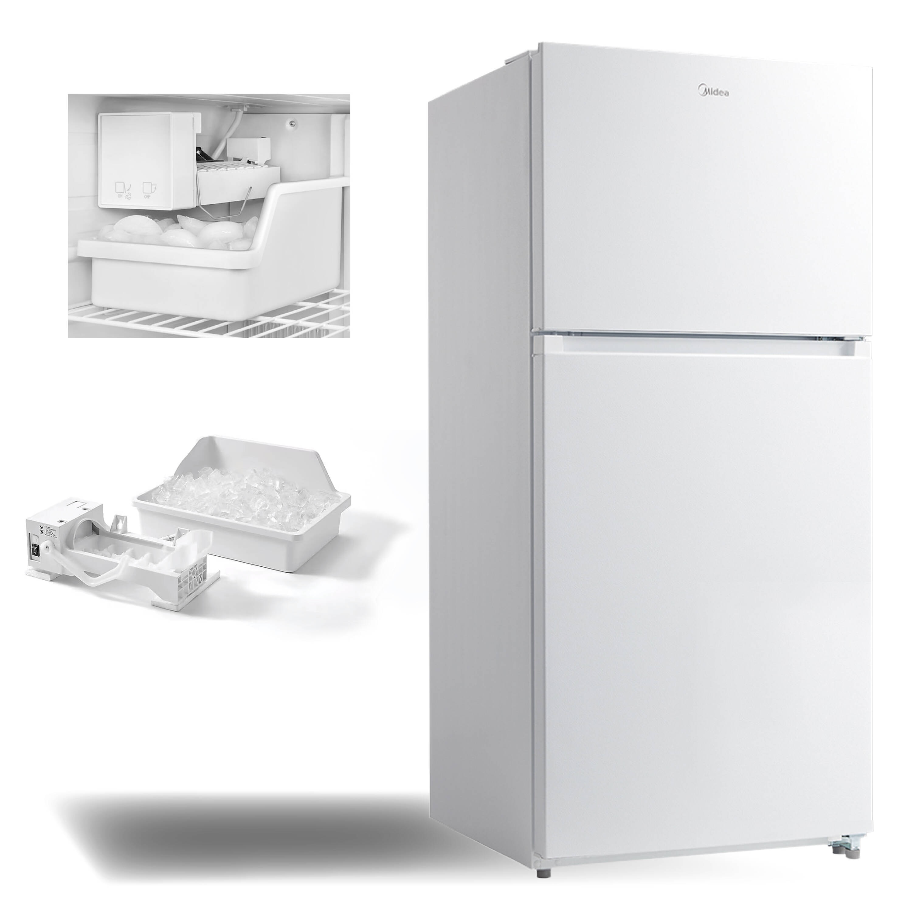 Upgrade your kitchen with the Midea 18.1-cu ft Top-Freezer Refrigerator (White), which offers both a wide range of convenient features and energy-efficient performance. The internal LED lighting ensures that you can always find what you’re looking for, while the electronic control panel makes temperature adjustments a breeze. Humidity-controlled crisper drawers keep your produce fresh, and the reversible door allows for flexible installation. The top-freezer design puts frozen foods at eye level for easy access. Bring home this refrigerator today to optimize your food storage capabilities and keep your kitchen running smoothly.