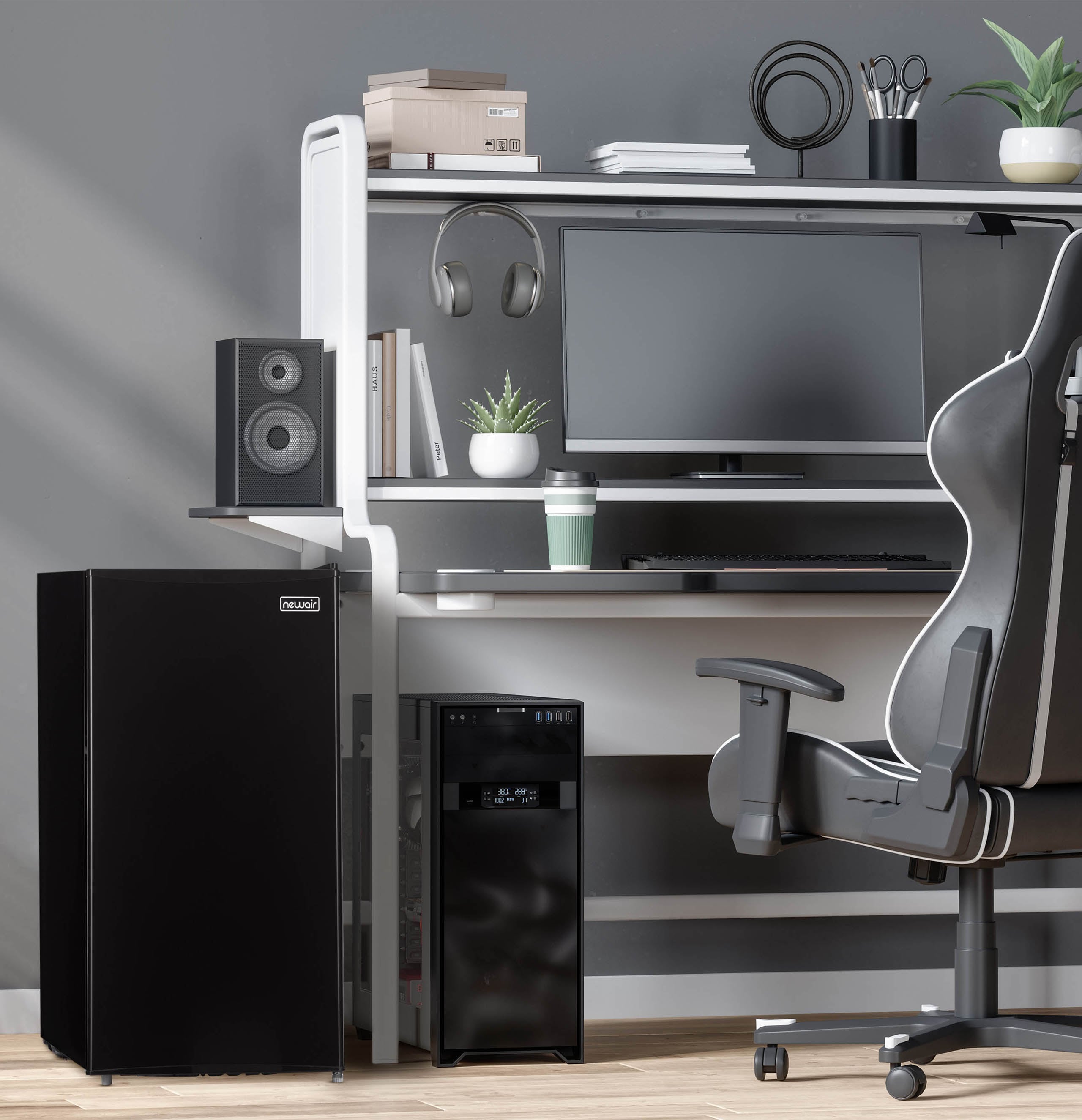 Looking for a personal fridge to hold all your favorite drinks and snacks? The Newair Compact Refrigerator provides fits anywhere you want the convenience of fresh food and cold drinks. The compact yet spacious design makes it the ideal dorm room fridge or accessory appliance for your game room. This freestanding mini fridge with freezer compartment also lets you customize storage with adjustable shelves, a can dispenser, and space for a two-liter bottle. Quiet and easy to maintain, this little fridge packs a big punch.