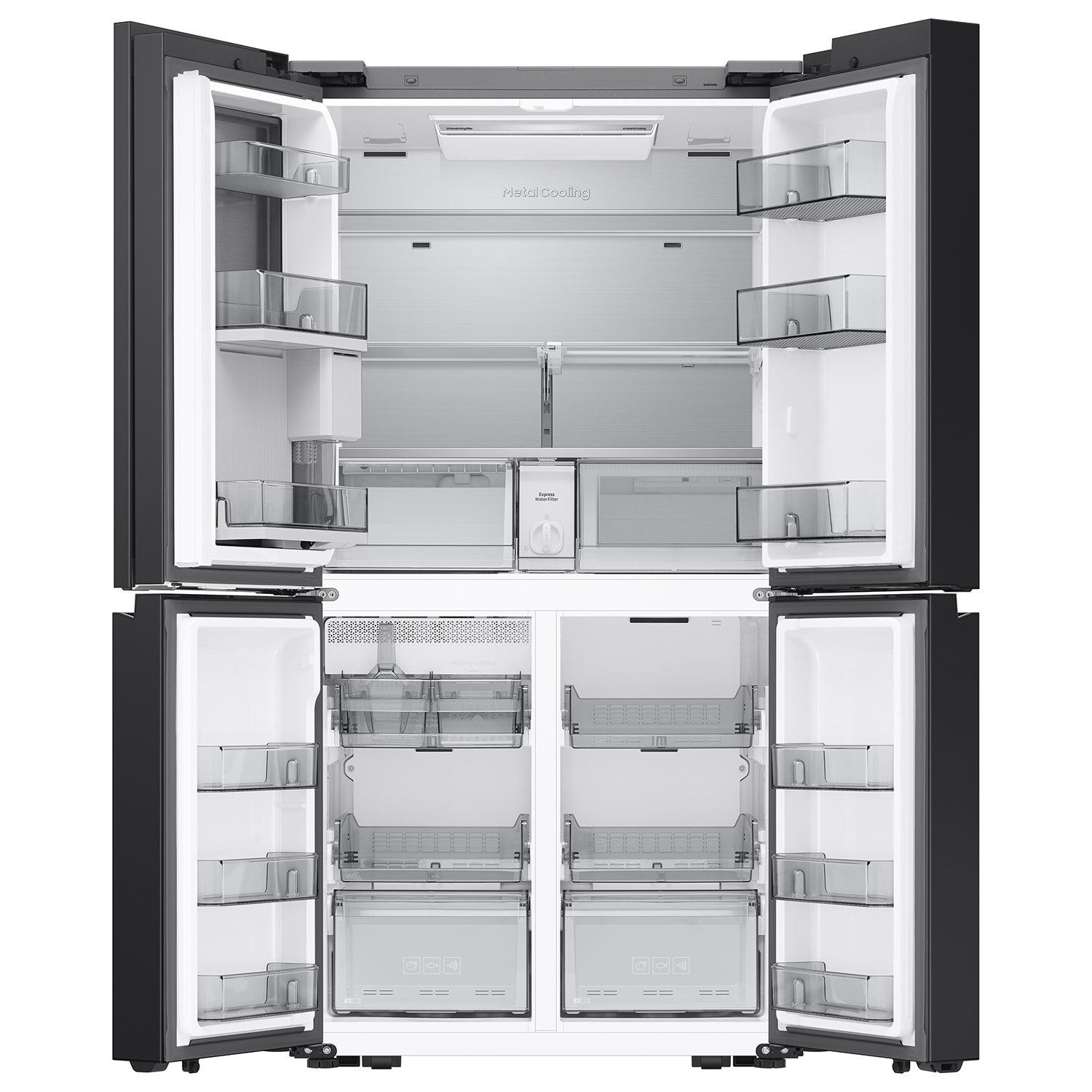 Samsung’s 23 cu. ft. Bespoke 4-Door Counter-Depth French Door Refrigerator with changeable door panel(Changeable door panels are sold separately); keeps your food fresh for longer while using less energy with AI Hybrid Cooling(The Peltier element moderates energy use and temperature (eg., shuts off AI Inverter Compressor) when internal temperatures rise above normal or AI predicts a temperature rise within 5 minutes); It comes with the Dual Ice Maker which offers two ice options: cubed ice and Sphere Ice; Plus, the FlexZone™ Drawer lets you customize the temperature of the middle drawer to fit your needs, with five adjustable settings.