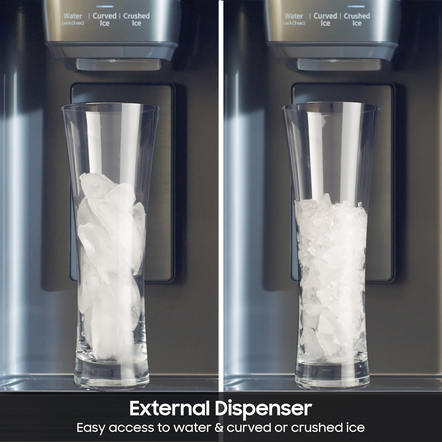 Get easy access to water & ice: Get easy access to chilled, filtered water and curved or crushed ice, with the external dispenser.