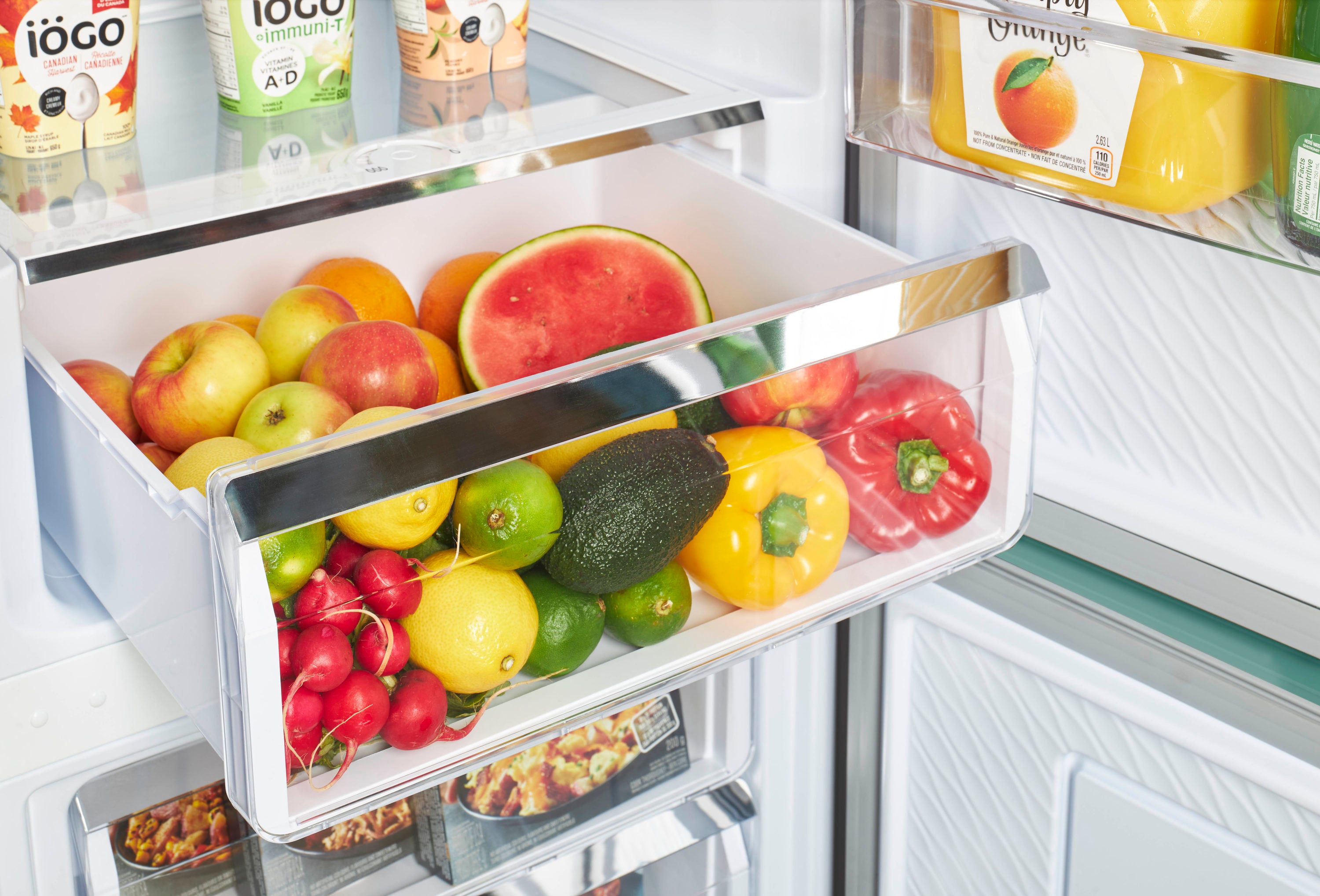 When you’re looking for more storage room, this 12 cu. Ft. Classic retro bottom-mount refrigerator comes with ample space to keep all your fresh and frozen foods, packaged in an eye-catching throwback design. Enjoy the ease of top-mounted fridge space that lets you reach in and find what you need without bending down. Plus the freezer bottom is designed to maximize storage for items you need less often.