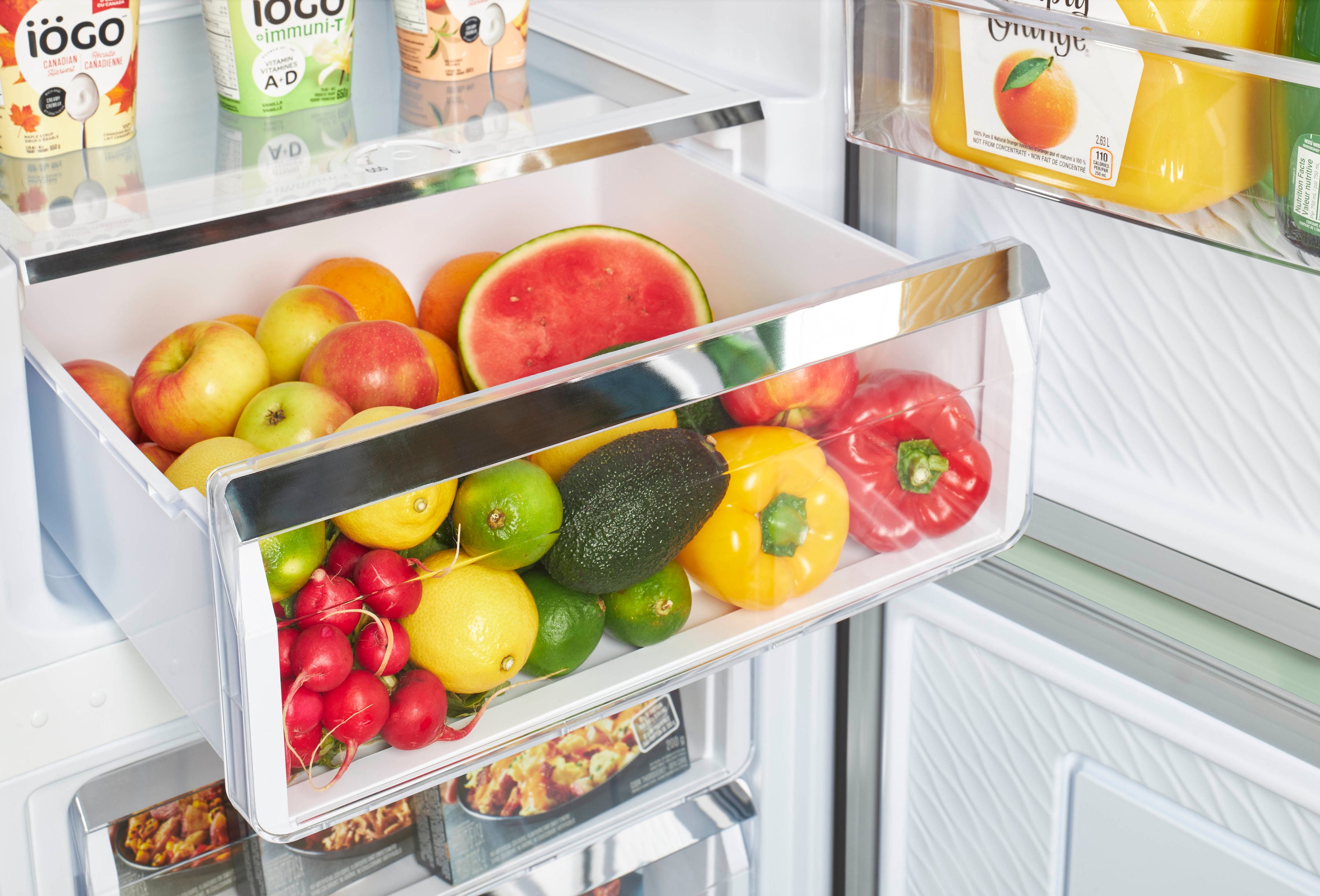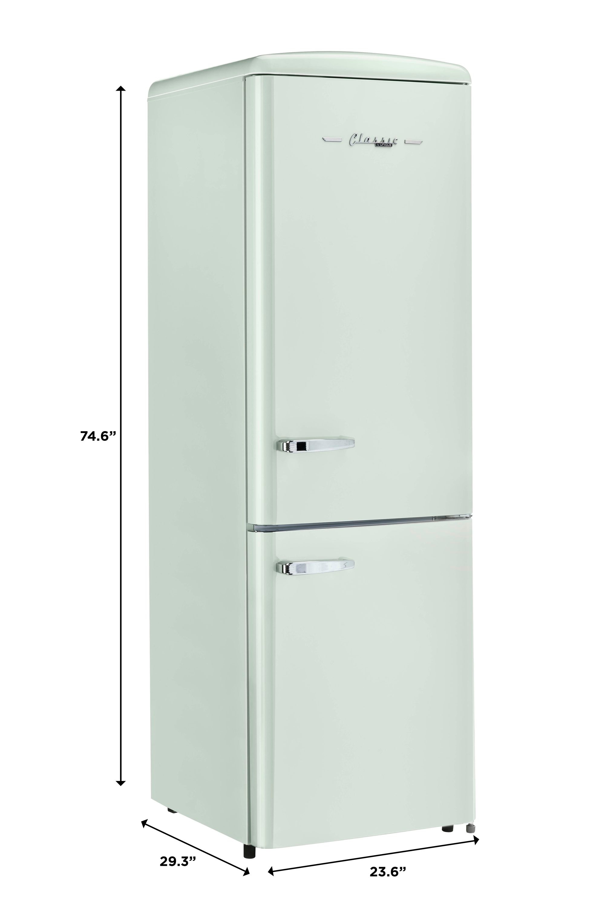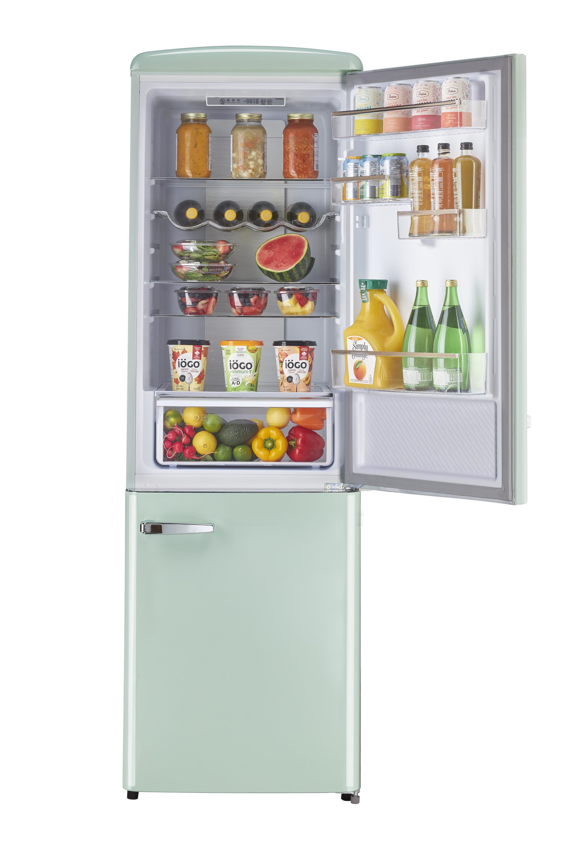 When you’re looking for more storage room, this 12 cu. Ft. Classic retro bottom-mount refrigerator comes with ample space to keep all your fresh and frozen foods, packaged in an eye-catching throwback design. Enjoy the ease of top-mounted fridge space that lets you reach in and find what you need without bending down. Plus the freezer bottom is designed to maximize storage for items you need less often.