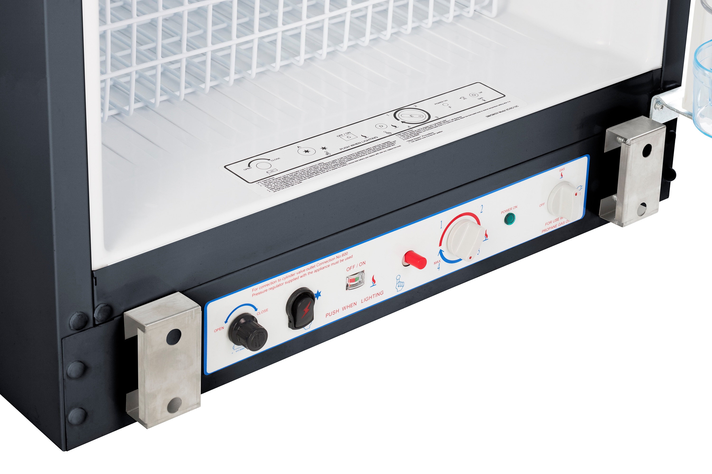 The perfect family sized propane fridge has arrived. The 14C is your family’s choice for a propane fridge – it has a sleek modern design, with ample storage space in both the fridge and the freezer. Efficient and ergonomically designed to suit all your family’s needs, the 14C comes with removable/adjustable glass shelves enabling clever reconfiguring. A large 3.5 cu. Ft. freezer provides enough space for your ice cream, meat and even bags of ice for your drinks – stay a little longer at your cabin or cottage with the new 14 cu. Ft. Propane fridge by Unique. Match-up with one of Unique s propane ranges.