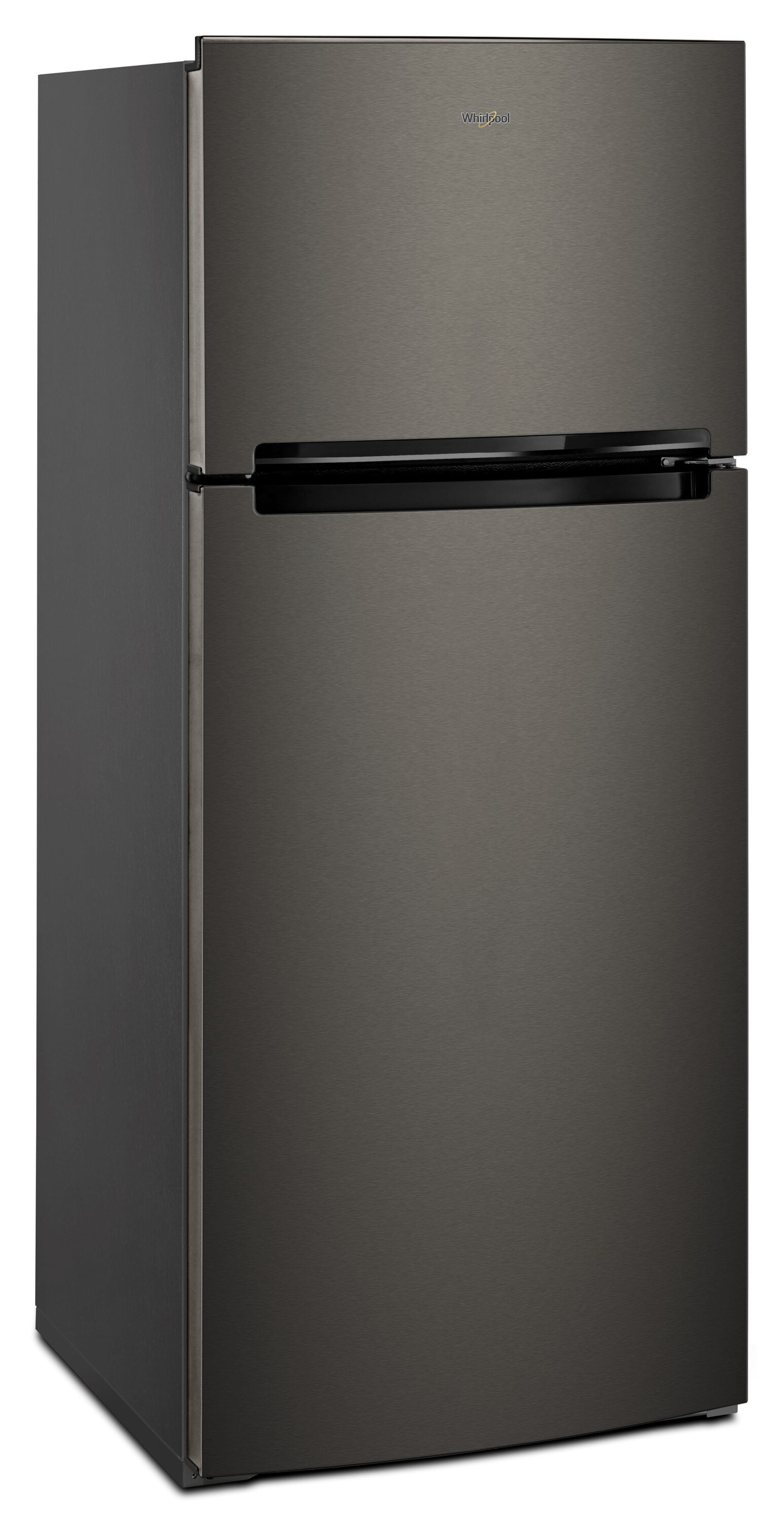 There’s always a place for fresh and frozen favorites inside our Whirlpool® refrigerator. This 28″ top-freezer refrigerator offers 18 cu. ft. capacity with more convenient storage options thanks to the Flexi-Slide™ bin that adjusts to make space for tall items. Bright LED interior lighting casts a more natural light on the contents of your black stainless finish top-freezer refrigerator so food looks as it should. Plus, you can easily access ice by adding the Whirlpool® EZ Connect icemaker kit.
