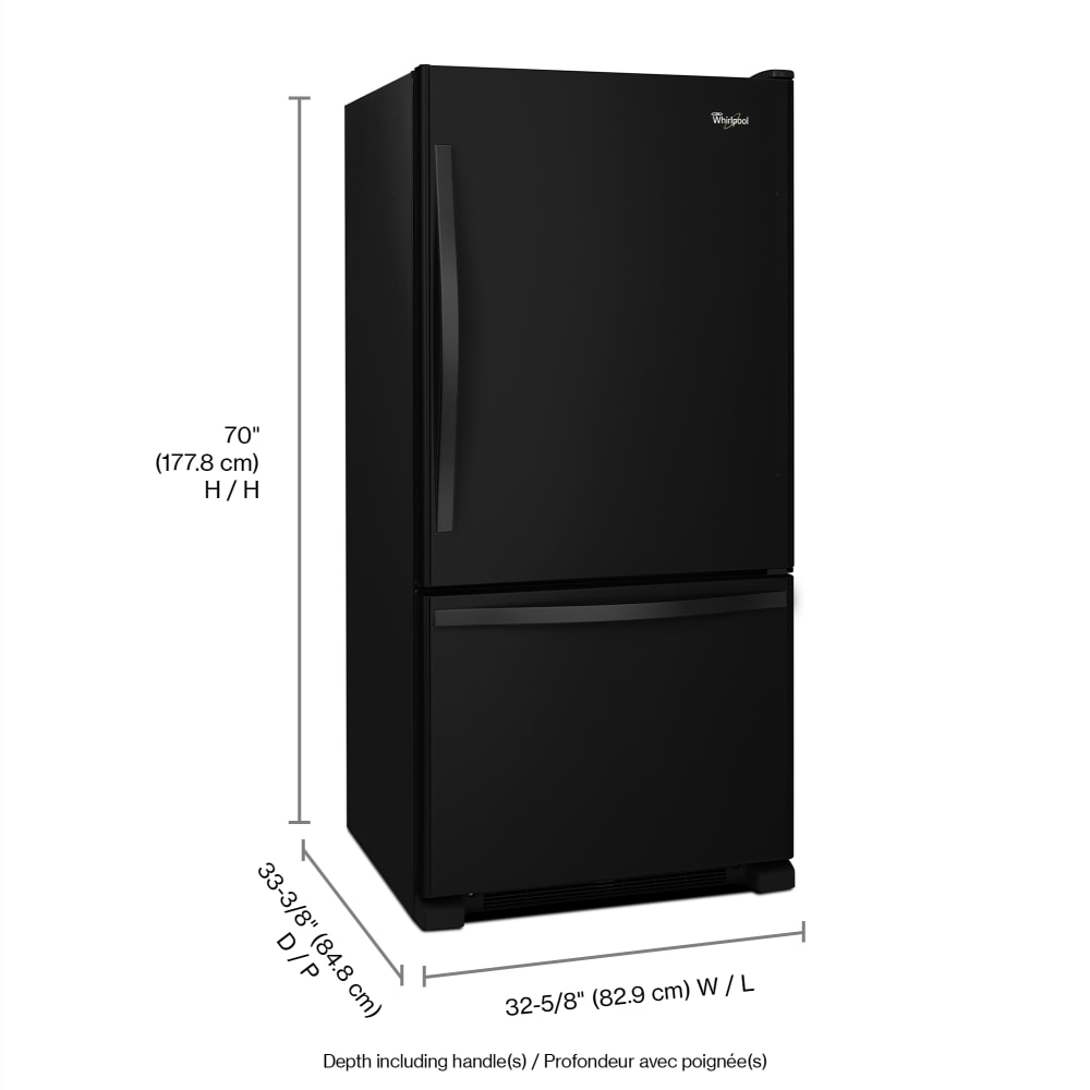 Conveniently store your family’s essentials. This Whirlpool® Bottom-Freezer Refrigerator has a 22 cu. ft. capacity and a freezer drawer that keeps frozen items in close reach. Features include a FreshFlow™ Produce Preserver that keeps fruits and vegetables in the ideal environment, an Accu-Chill™ Temperature Management System that cools items quickly and a Factory-Installed Icemaker. This model is ENERGY-STAR® certified.