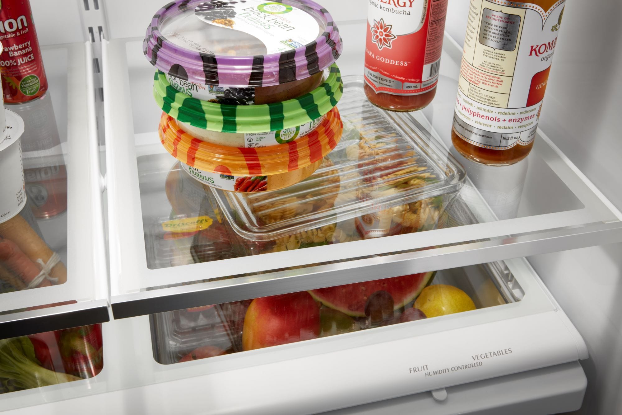 Store fruits and veggies in the humidity-controlled crispers
