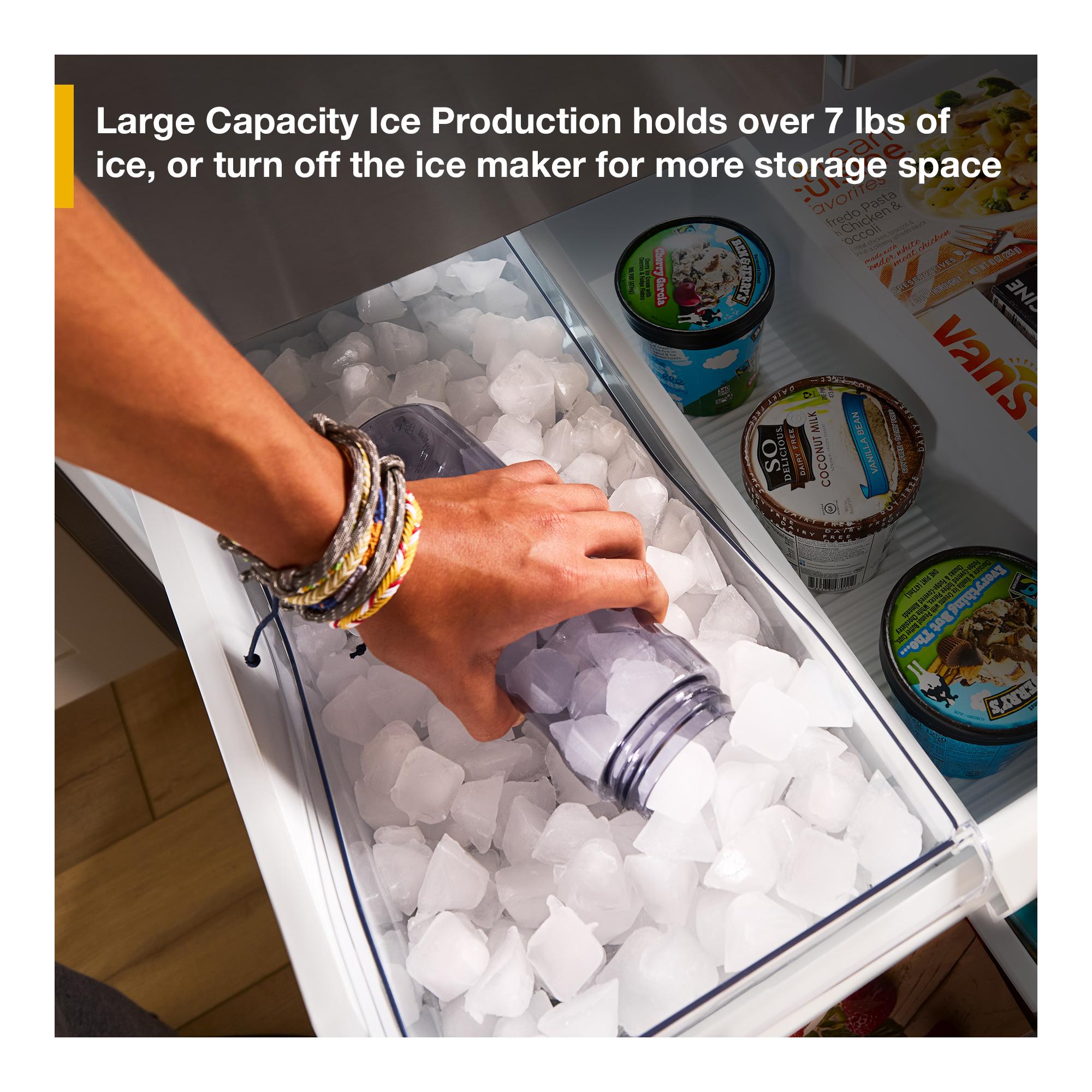 Large Capacity Freezer Ice stores over 7 lbs of ice
