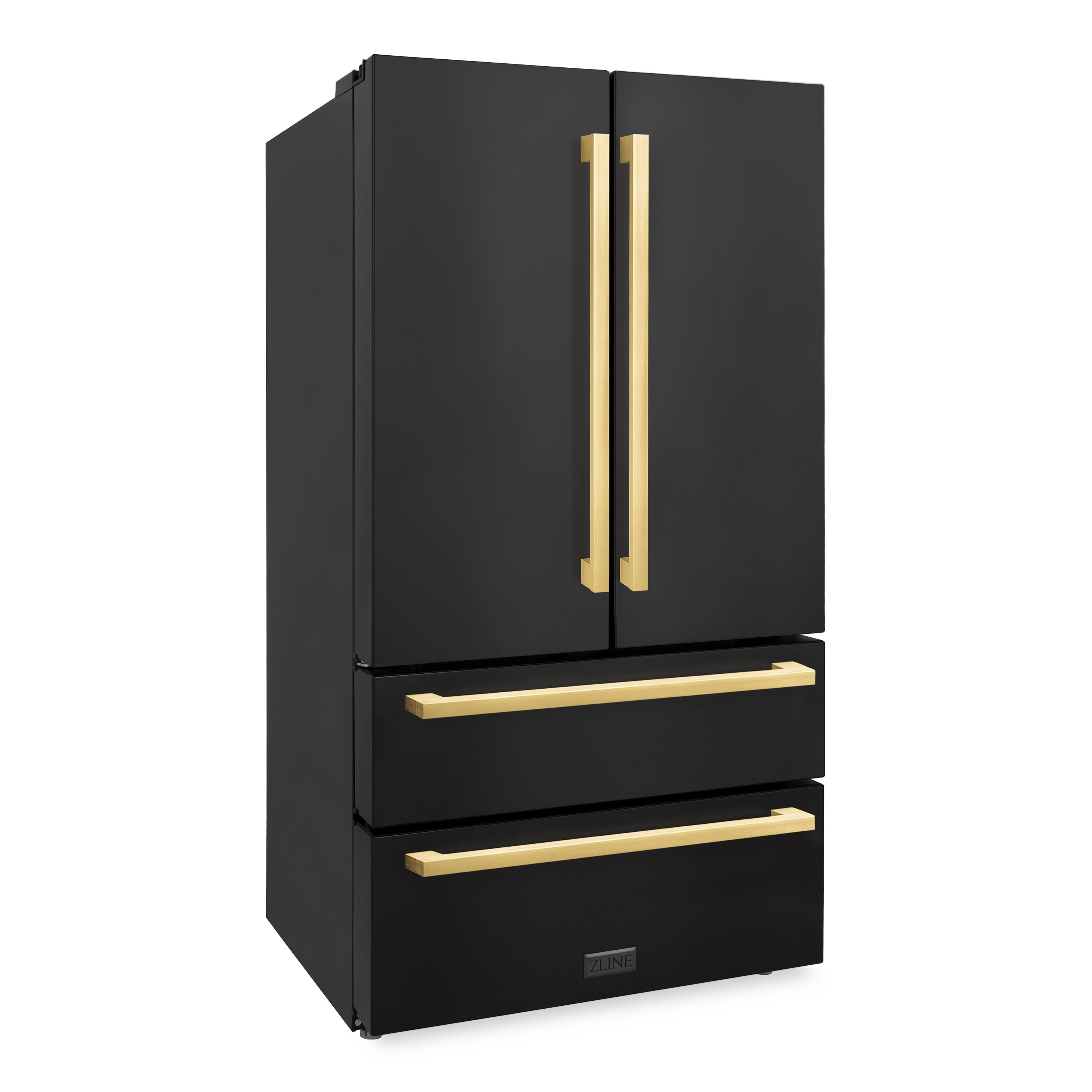 Luxury isn’t meant to be desired – it’s meant to be attainable. The ZLINE Autograph Edition 36 in. 22.5 cu. ft. Counter-Depth French Door Refrigerator with Ice Maker in Fingerprint-Resistant Black Stainless Steel and Polished Gold Modern Handles (RFMZ-36-BS-FG) delivers an elevated experience by pairing innovative dual cooling technology with a spacious counter-depth design and a high-capacity built-in ice maker. Achieve ZLINE Attainable Luxury® excellence with timeless features designed to enhance your kitchen’s capability.