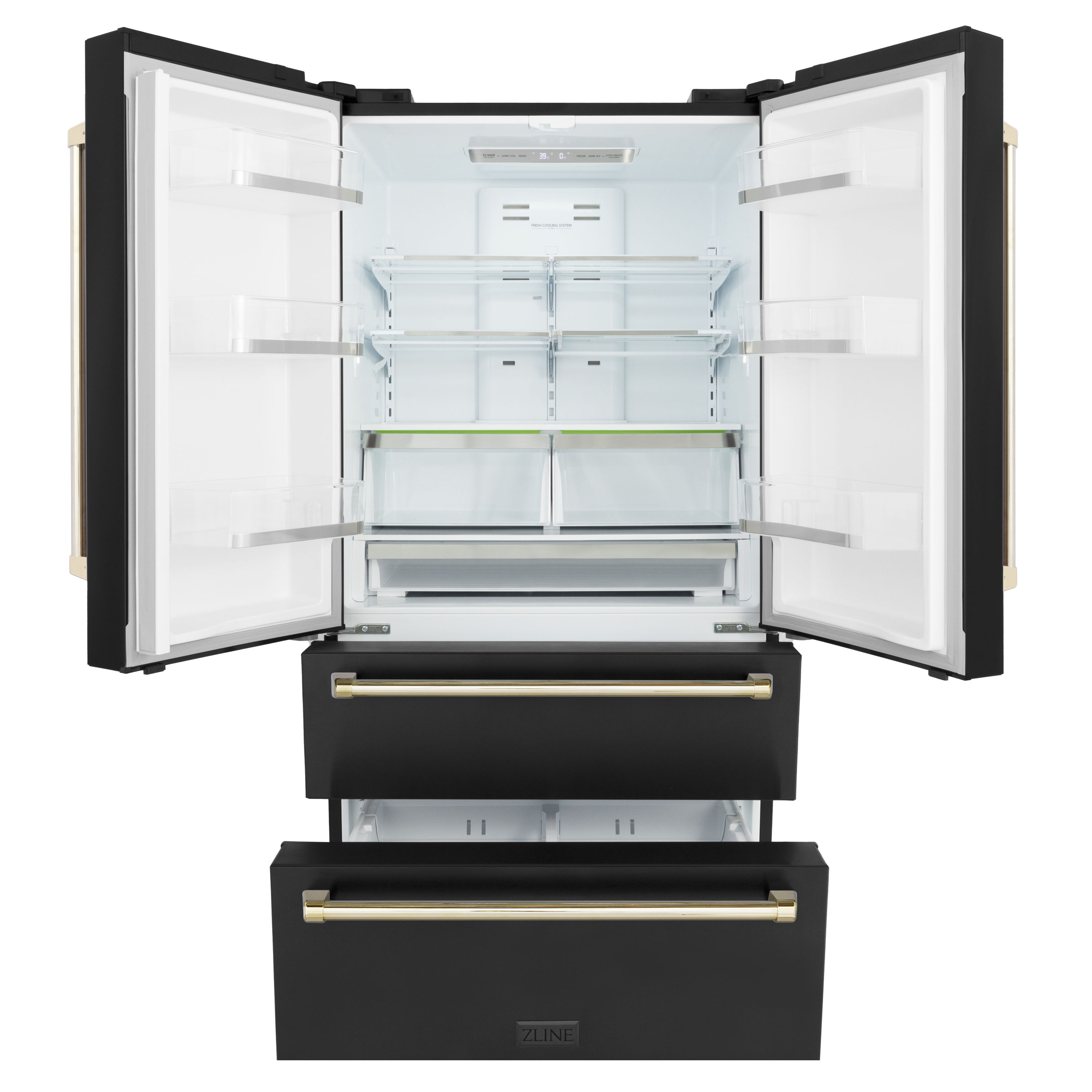 ZLINE KITCHEN & BATH Counter-Depth 22.5-cu ft 4 -Door French Door Refrigerator with Ice Maker with Ice Dispenser ( Fingerprint Resistant Black Stainless Steel with Polished Gold accent Handles ) ENERGY STAR Certified