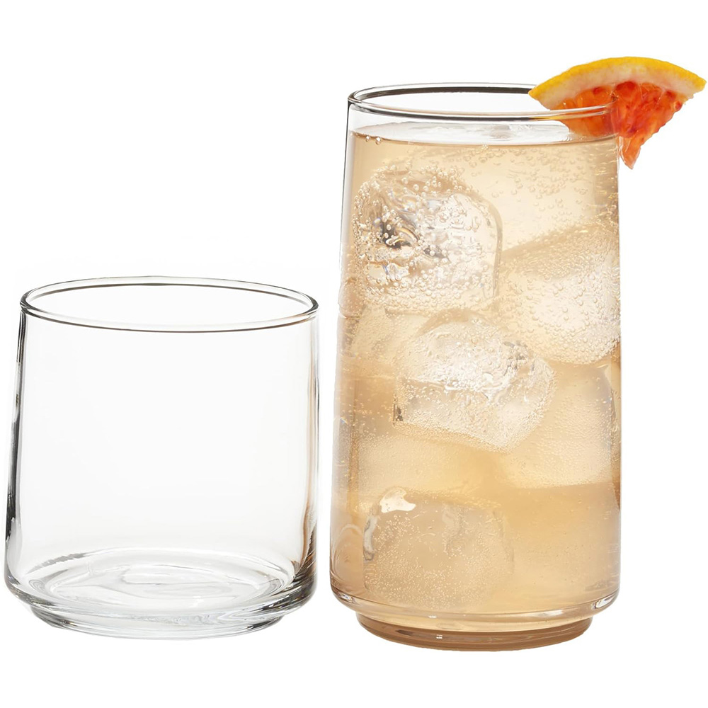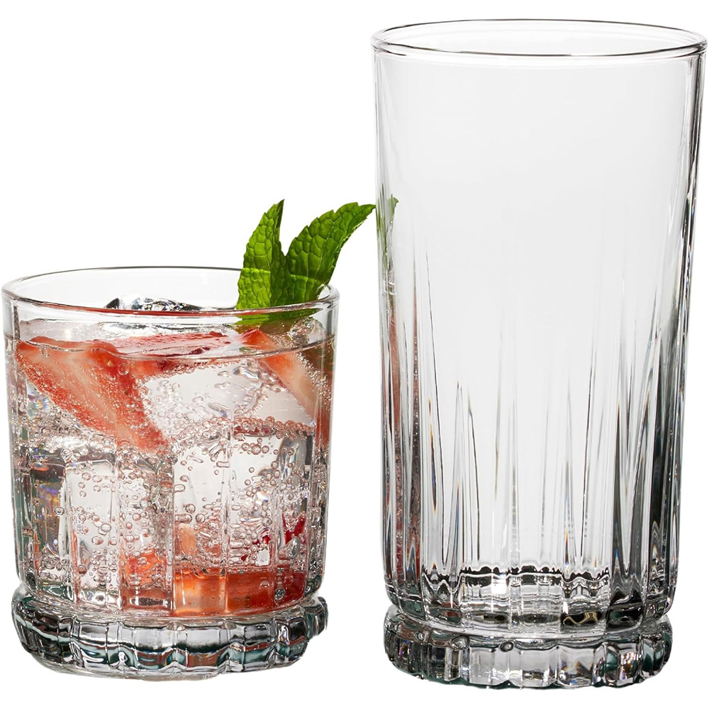 Anniston Drinking Glasses Set 16 Piece Set (8 Rocks Glasses & 8 Tumbler Glasses)