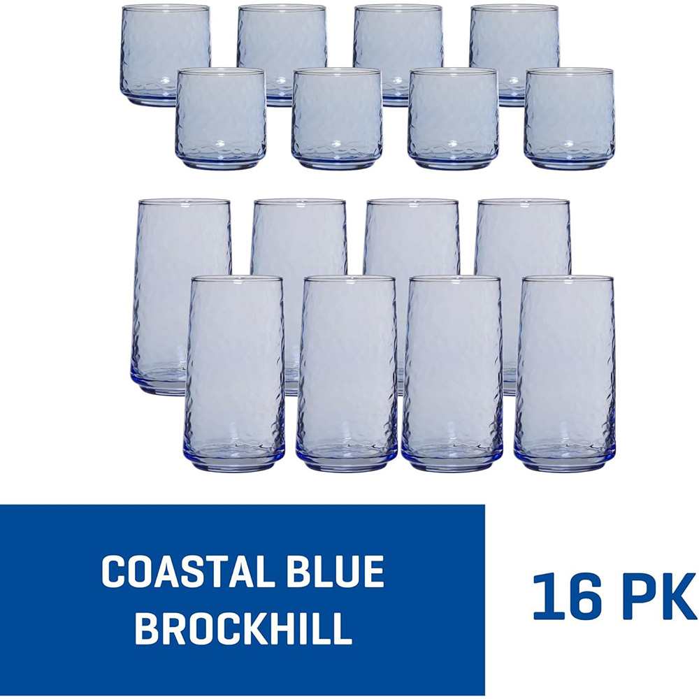 Coastal Blue Brockhill Drinking Glasses (16-Pieces, 12-ounce and 18-ounce)