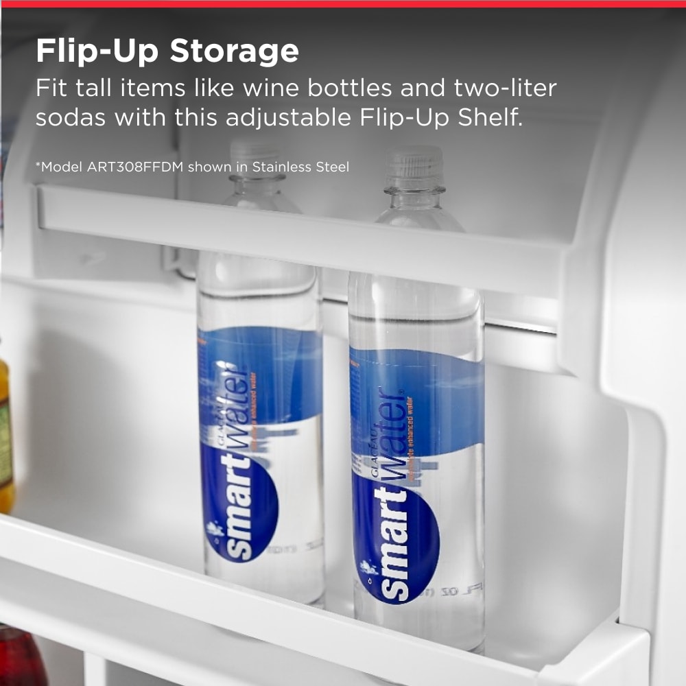 Fit tall items like wine bottles and two-liter sodas with the adjustable Flip-Up Shelf