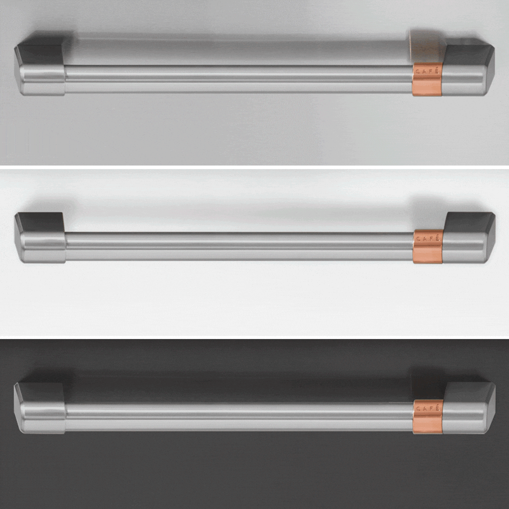 Nothing about your personal style is standard. So why should your appliances be? Cafe redefines the kitchen space with Customizable Professional Collection, which gives you the ability to pair matte white, matte black, or stainless appliance finishes with your choice of six distinct handle and knob options. Cafe curated hardware offerings include brushed, bronze, brushed black, brushed copper and brushed stainless, alongside the latest bold additions, brushed brass and flat black. Get the look that truly reflects your personality with Cafe’s unique finishes and exceptional styling.