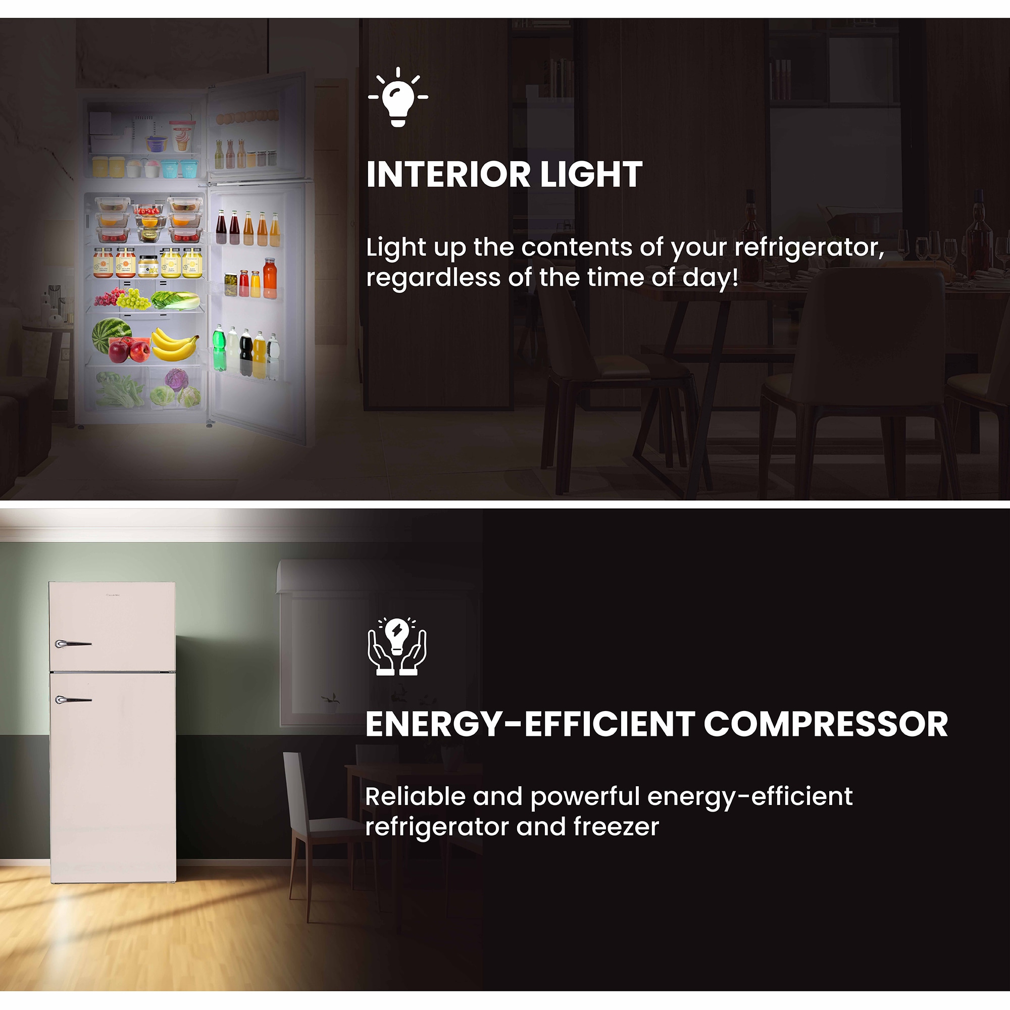 INTERIOR LIGHT – Illuminate the contents of your refrigerator — no matter the time of day
