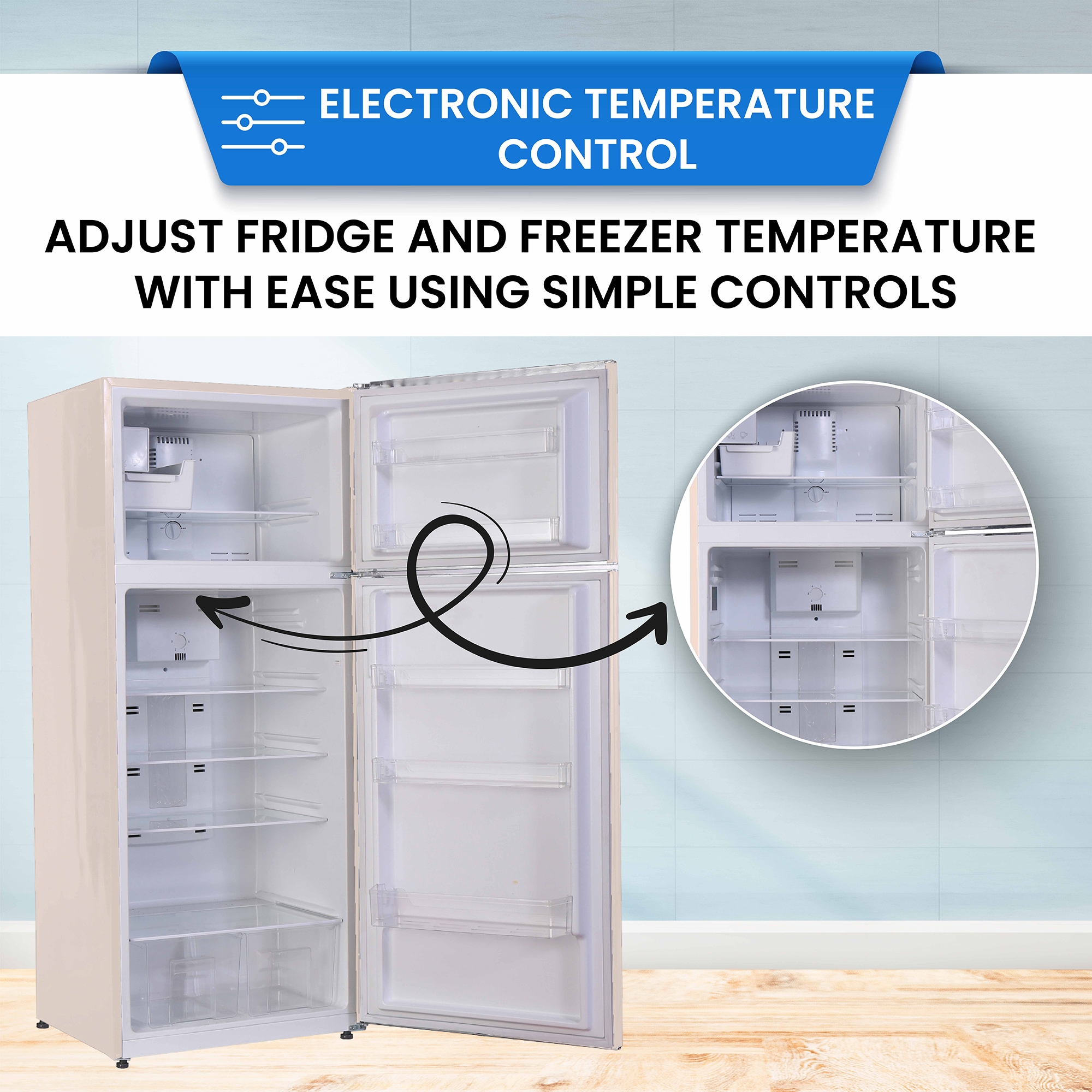 ELECTRONIC TEMPERATURE CONTROL – Easily adjust the temperature of both the fridge and freezer with simple-to-operate controls.