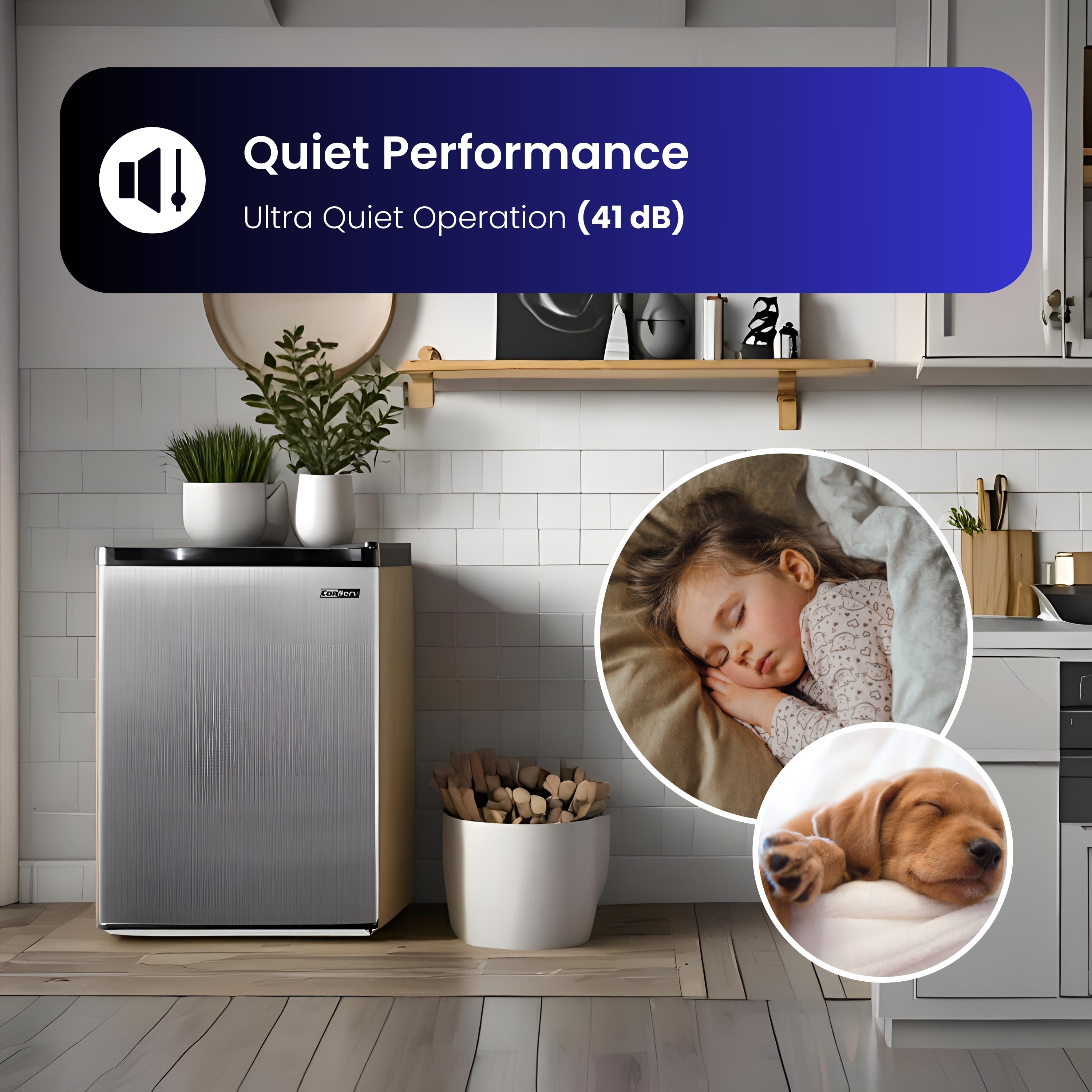 The Conserv CREF26SS Compact Refrigerator is the ideal fridge for maximum storage in a small space. A clean stainless-steel finish brings sophistication to any dorm room or wet bar. The 2.6 cu.ft. fridge, measuring 25×17.5×19.3 inches (HxWxD) doesn’t come up short on storage thanks to its moveable glass shelves and wire bottle rack. Plus with added features such as a reversible door, adjustable feet, and a recessed handle, you can customize this unit to meet your needs and preferences. Eco-friendly with mechanical temperature control and manual defrost, this unit is easy on the environment and your energy bill