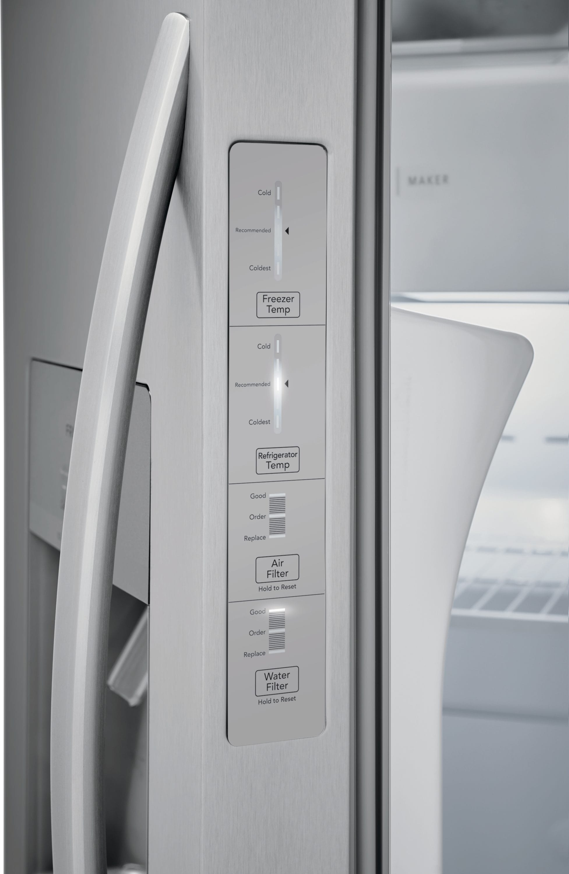 This Frigidaire 36-in side-by-side refrigerator offers our EvenTemp™ Cooling System which reacts quickly to temperature fluctuations and constantly circulates cold air throughout the fresh food and freezer compartments, ensuring a consistent cool from top to bottom. Keep fruits and vegetables fresh in our crispers that offer a seal to block out dry air. Enjoy the capacity to fit all of your family’s favorites and keep everything tidy with our flexible organization system that includes adjustable gallon door bins, removable glass shelves and two produce drawers. Awarded the Best Overall Side by Side Refrigerator of 2023 by Reviewed.com (USA Today).
