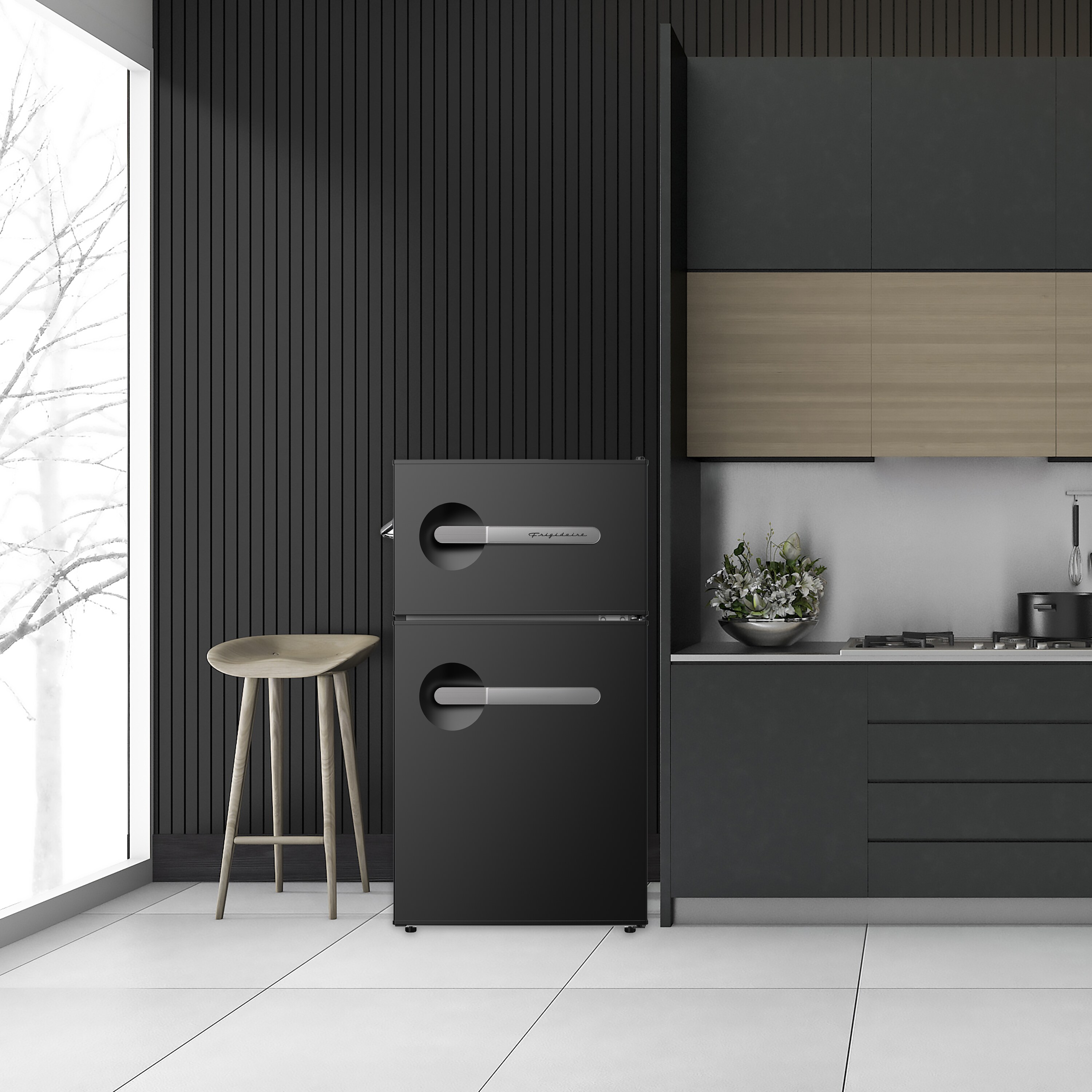 Built-in can dispenser offers a dedicated space to store canned beverages, making them easily accessible without cluttering the main refrigerator shelves