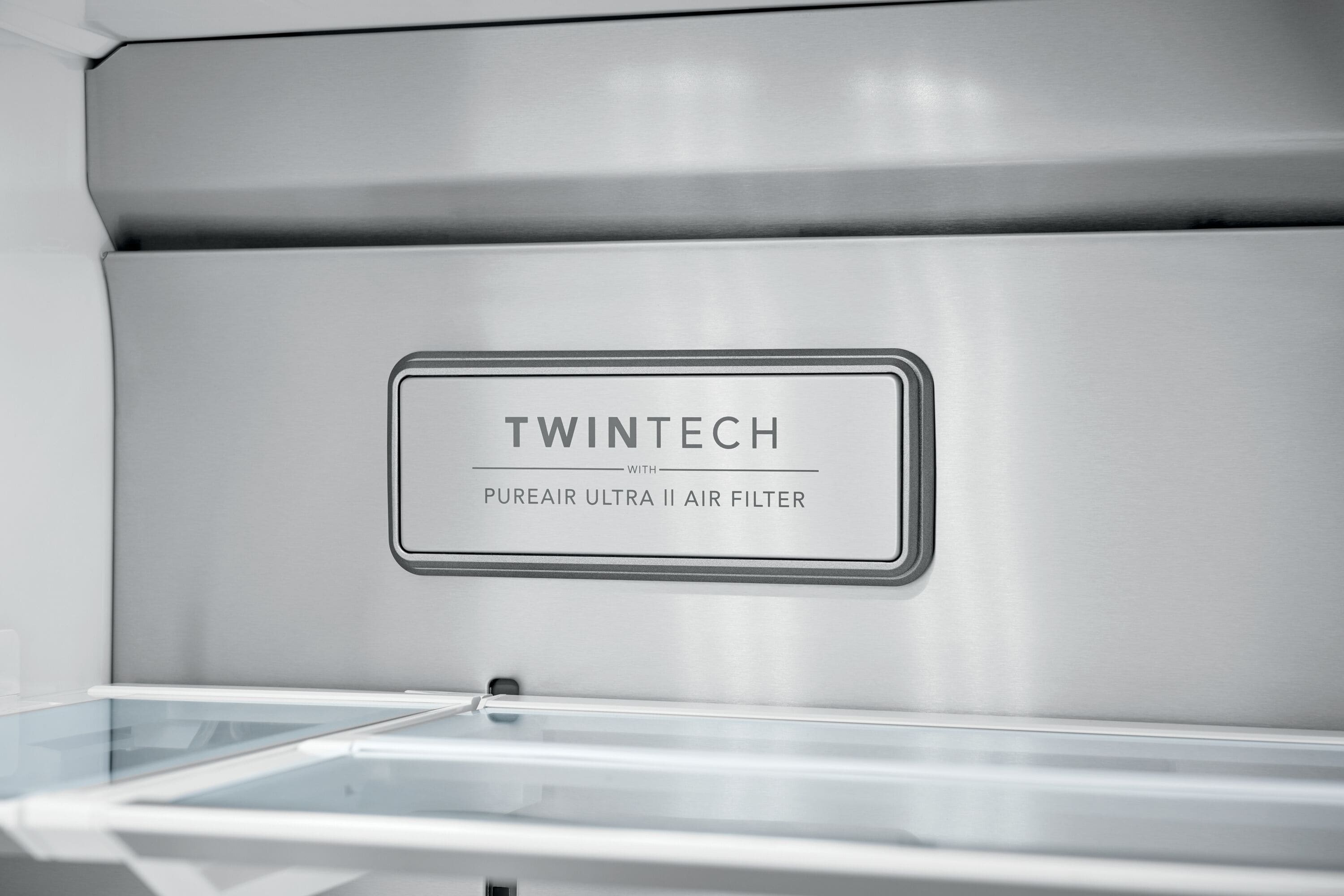 This Frigidaire four-door French door refrigerator offers the Custom-Flex® Temp Drawer, the only drawer available that fully switches from frig to freezer, so you can store all your family favorites from yogurt to frozen pizza. It helps keep fruits and vegetables fresh longer with CrispSeal® crispers, and it’s easy to organize and clean with SpaceWise® organization system and Smudge-Proof® stainless steel.
