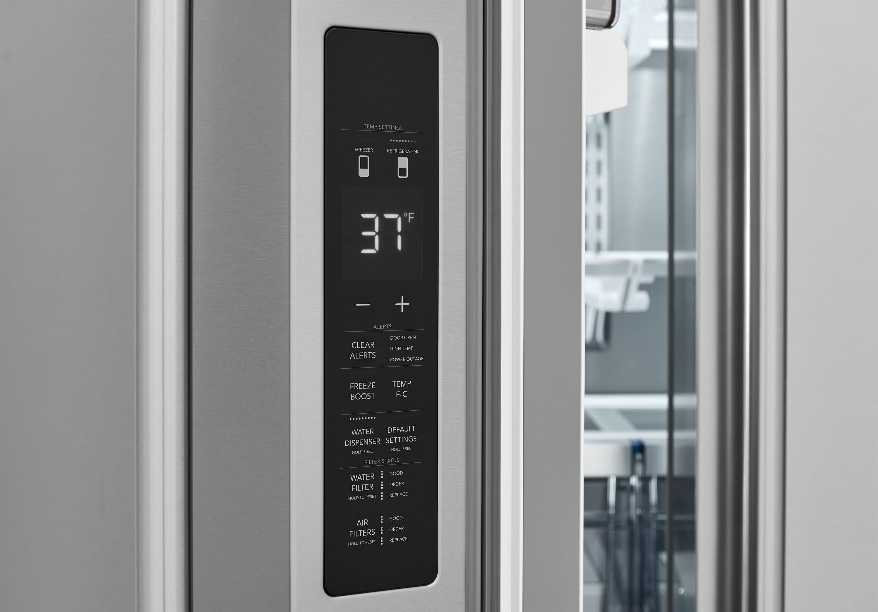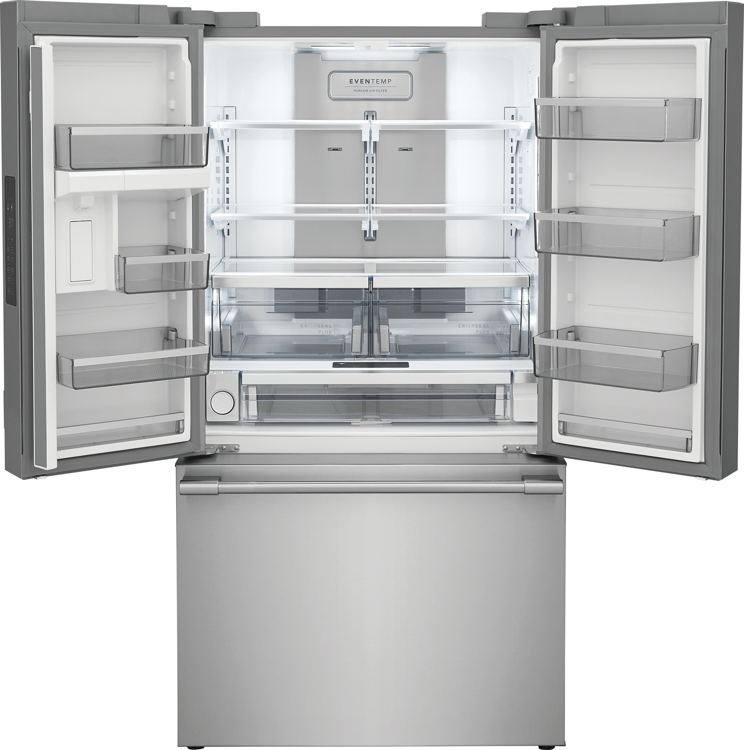 This Frigidaire Professional French door refrigerator offers a freshness system that maintains the taste and texture of even your most delicate foods. Our freshness system is packed with technologies that keep food fresh and reduce food waste, such as our cooling system, advanced crispers, and our genuine air and water filtration.