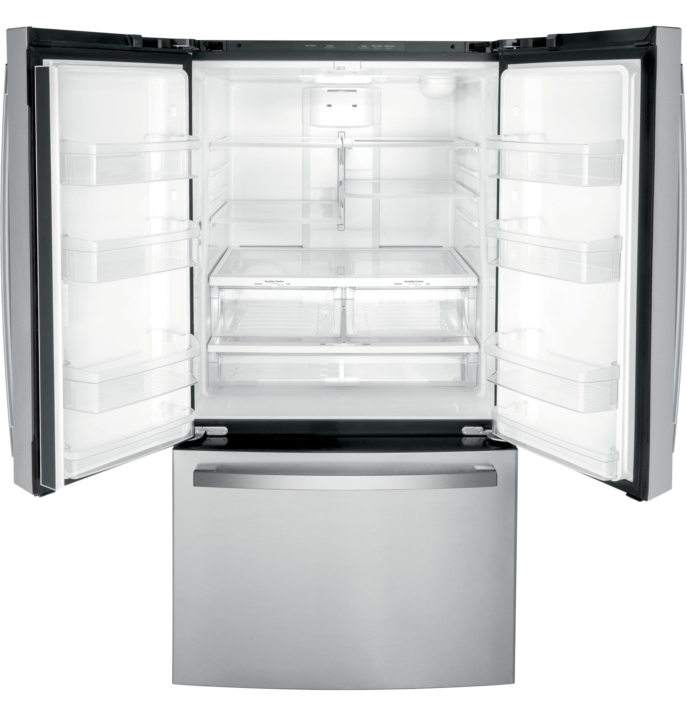 Two humidity-controlled drawers and full-width drawer – create the right environment for keeping fruits and vegetables fresh, while easily storing wider items like a party platter or a sheet cake