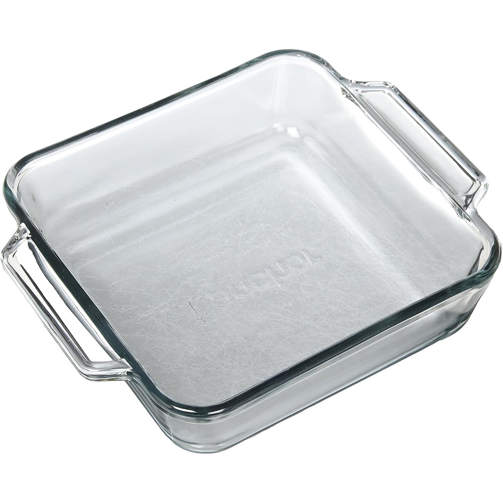 Anchor Hocking TrueFit Bakeware Set contains (1) 8-inch baking dish with cherry TrueFit Lid. Glass is microwave, pre-heated oven, refrigerator, freezer, and dishwasher safe; lids are BPA Free. Transporting your baked goods has never been so easy! This set is perfect for registries and new homeowners..