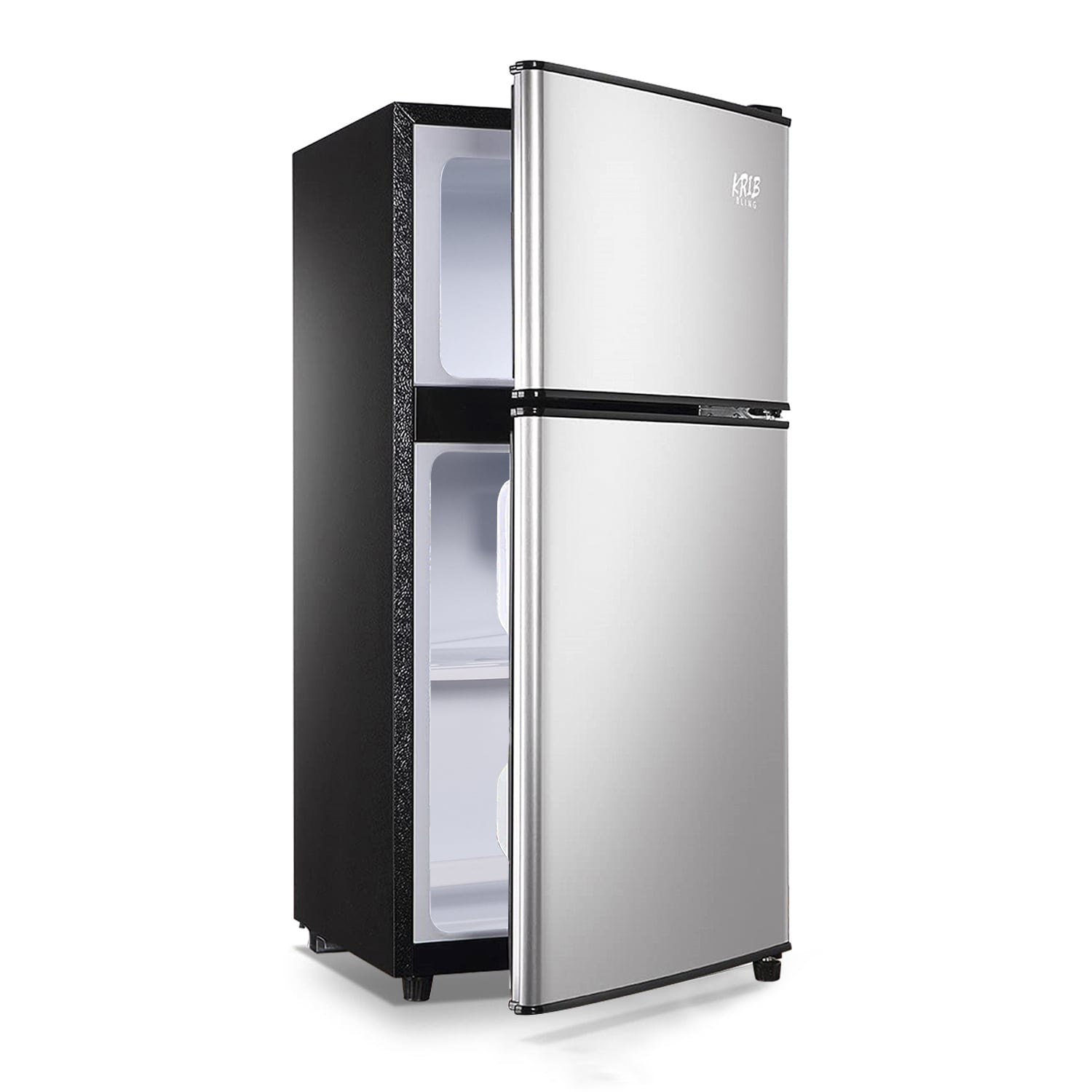 Two Door Design: This refrigerator has large capacity of 3.5 cu ft (1.2cu-ft freezer and 2.3cu-ft cooler) with dual door design.