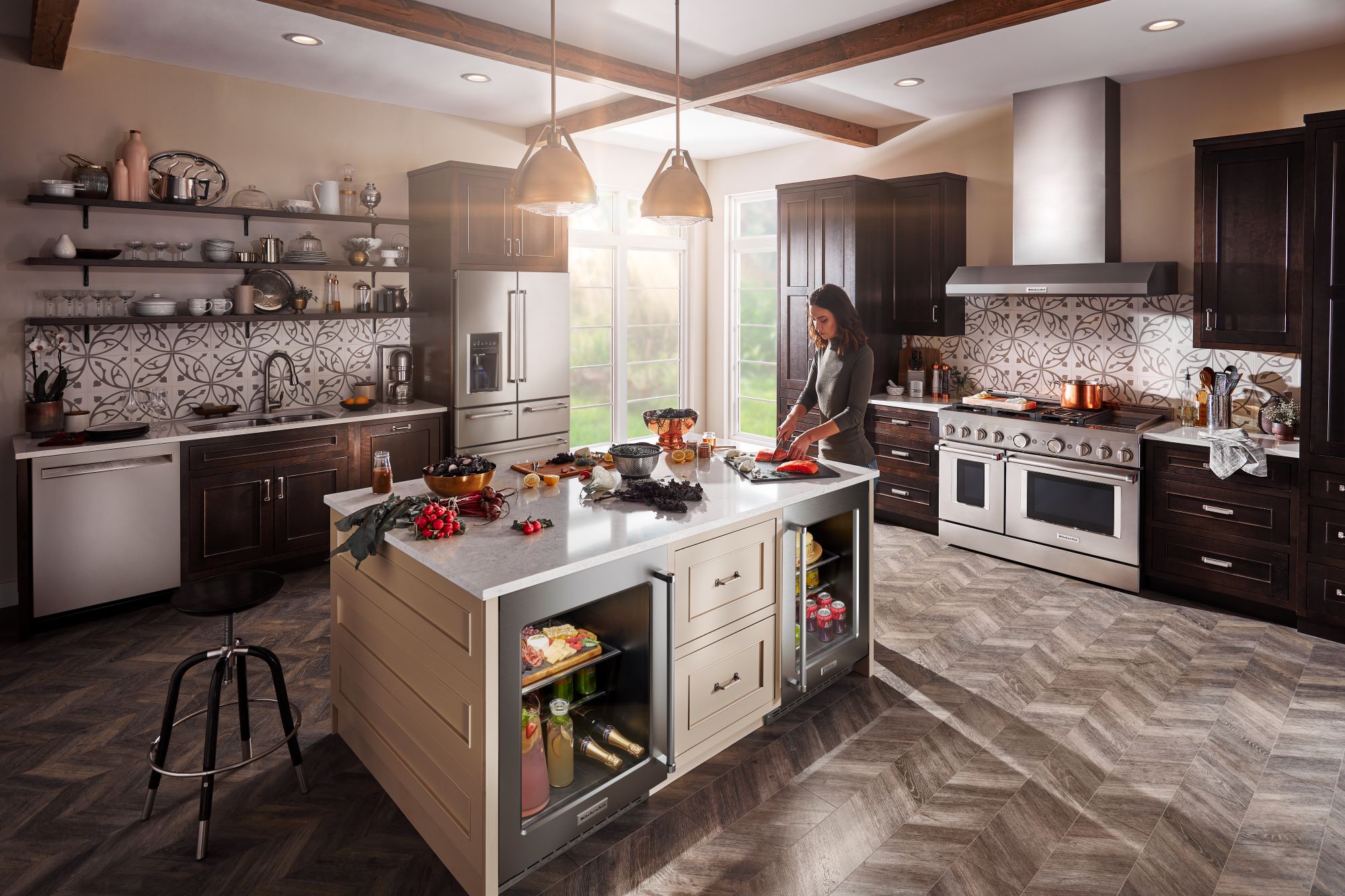 This Undercounter Refrigerator makes room for party essentials from platters to pitchers. Motion-Activated LED Lighting turns on inside as you approach, so you can see through the UV-Protected Thermal Glass Door to what’s inside, and a Temperature Monitoring System with sensor alert adds peace of mind. Fully Flush Installation with Hidden Hinges provides a built-in look within cabinetry.