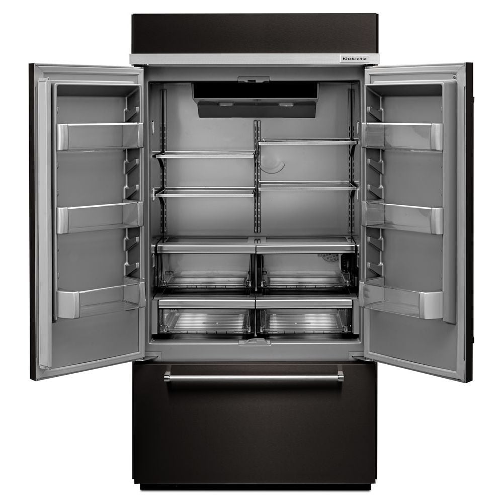 Behind these built-in French doors lie performance and beauty. The Preserva® Food Care System features three technologies that work in concert to assure crisp produce and deliciously flavorful foods while helping to eliminate refrigerator odors. The glossy silver Platinum Interior Design complements the metallic accents on shelves, crisper and baskets while the SatinGlide® System with Soft-Close assures their smooth operation.