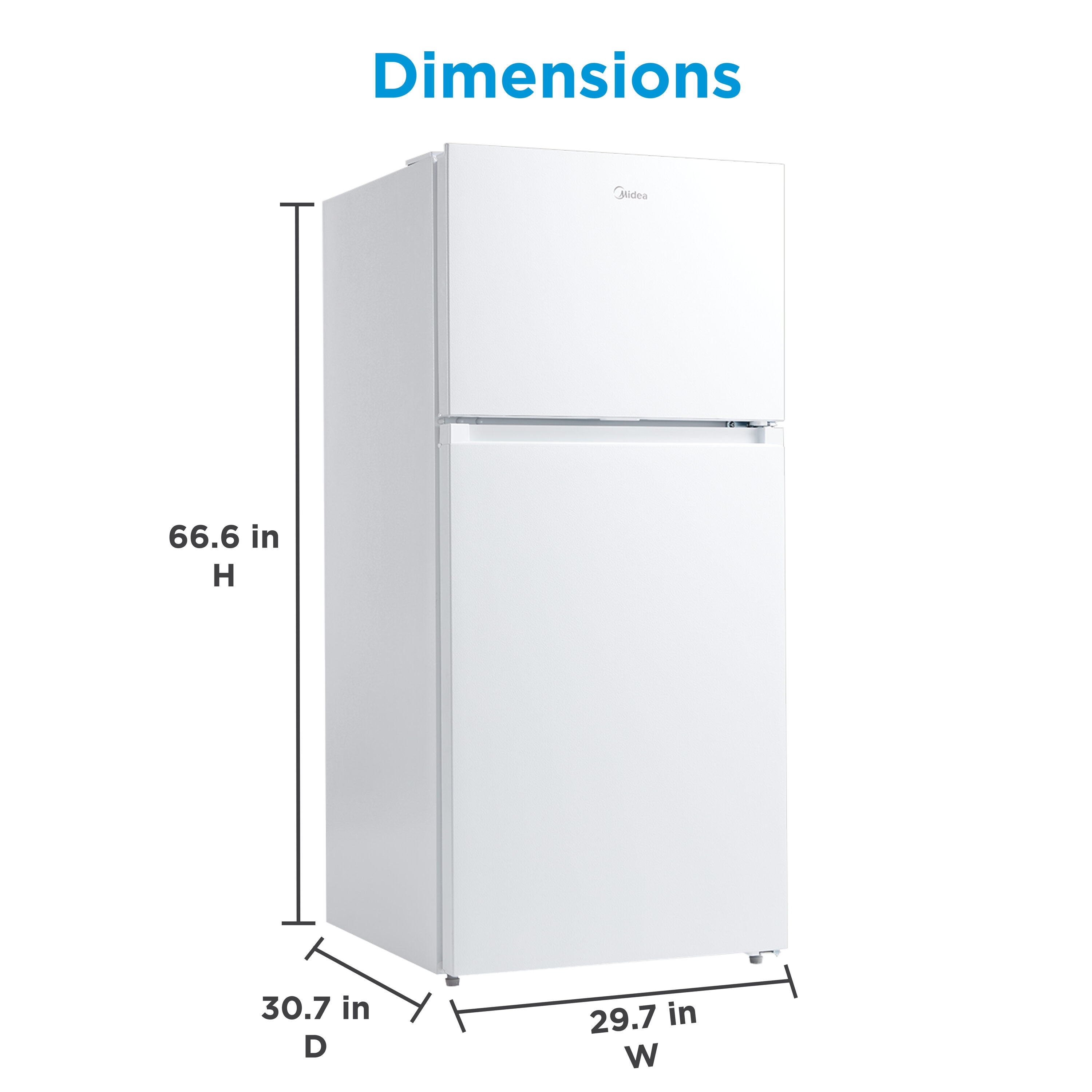 Upgrade your kitchen with the Midea 18.1-cu ft Top-Freezer Refrigerator (White), which offers both a wide range of convenient features and energy-efficient performance. The internal LED lighting ensures that you can always find what you’re looking for, while the electronic control panel makes temperature adjustments a breeze. Humidity-controlled crisper drawers keep your produce fresh, and the reversible door allows for flexible installation. The top-freezer design puts frozen foods at eye level for easy access. Bring home this refrigerator today to optimize your food storage capabilities and keep your kitchen running smoothly.