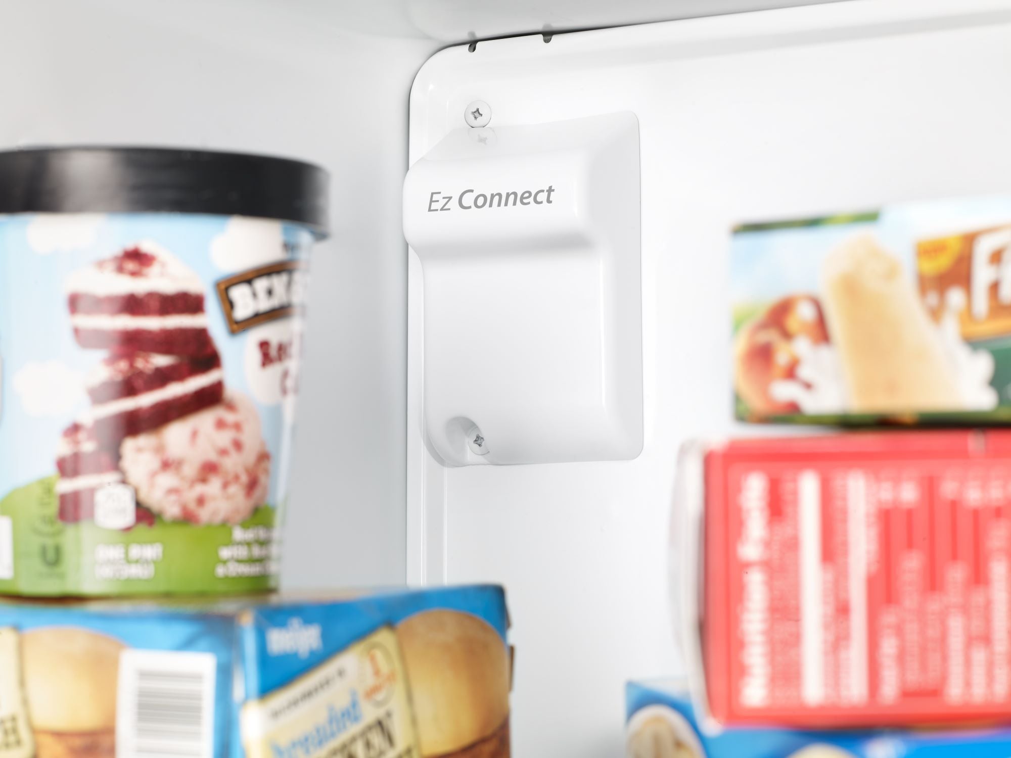 There’s always a place for fresh and frozen favorites inside our Whirlpool® refrigerator. This 28″ top-freezer refrigerator offers 18 cu. ft. capacity with more convenient storage options thanks to the Flexi-Slide™ bin that adjusts to make space for tall items. Bright LED interior lighting casts a more natural light on the contents of your black stainless finish top-freezer refrigerator so food looks as it should. Plus, you can easily access ice by adding the Whirlpool® EZ Connect icemaker kit.