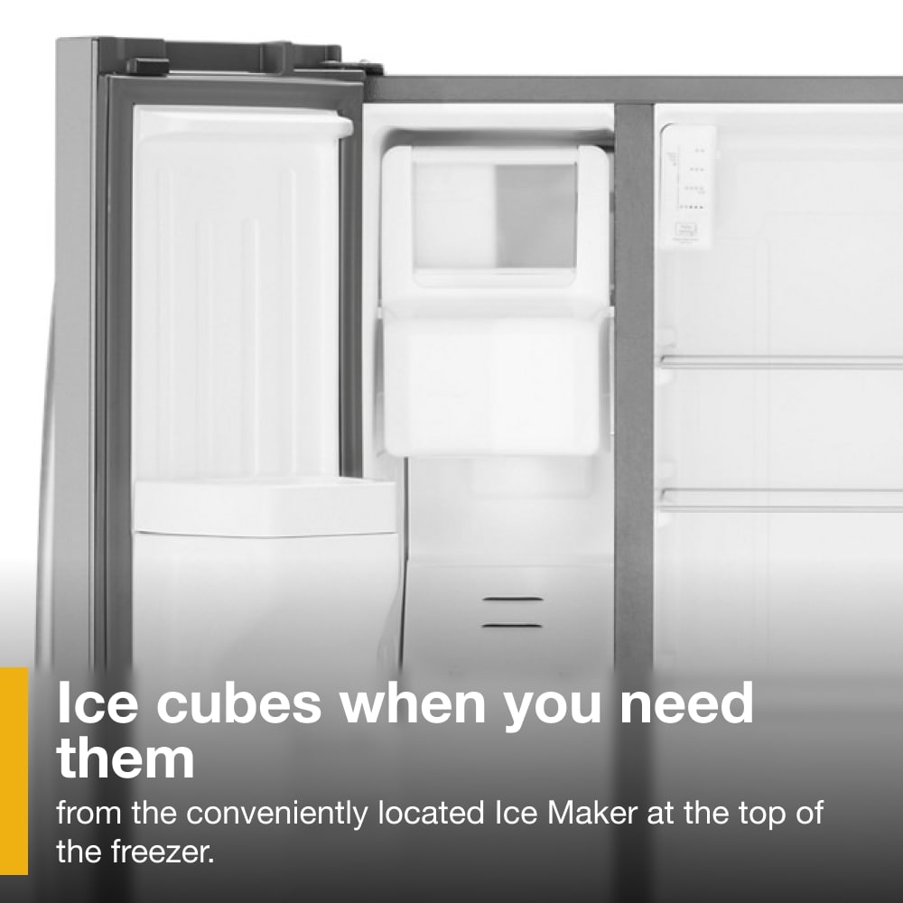 Purposeful storage in a refrigerator is a game changer. This 24.6 cu ft side-by-side refrigerator from Whirlpool® has many thoughtful features that optimize storage so you can fit and find your family’s most loved foods and beverages. Good to know: Whirlpool® refrigerators have the lowest repair rate among side by side refrigerators. (*Claim compares Whirlpool branded refrigerators to GE, Frigidaire, Samsung and LG.Based on service required data, Q2 2022-Q2 2023, Traqline – The Stevenson Company, 2023.) This model is only available at Lowe’s. Only available at Lowe’s.