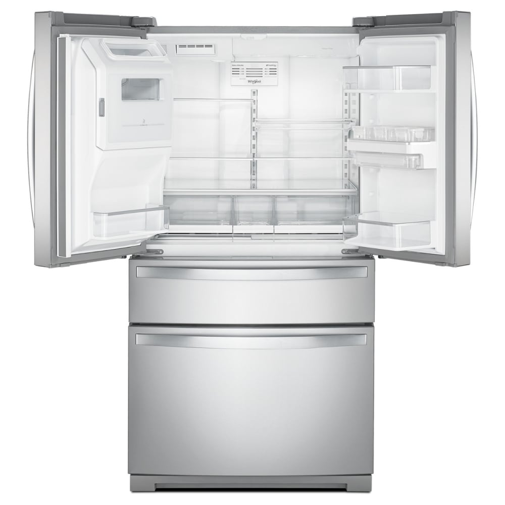 Discover purposeful storage spaces that help store your family’s favorites. This Whirlpool® 26 cu. ft. 4-Door Refrigerator is equipped with Prep & Store Bins that help organize your refrigerator and keep food visible. The Prep & Store Shelf keeps leftovers, prepped meals and more easily accessible and right at eye-level. This model also has a Refrigerated Exterior Drawer that lets you adjust temperature controls based on what you’re storing, a Triple Crisper and In-Door-Ice® Storage.
