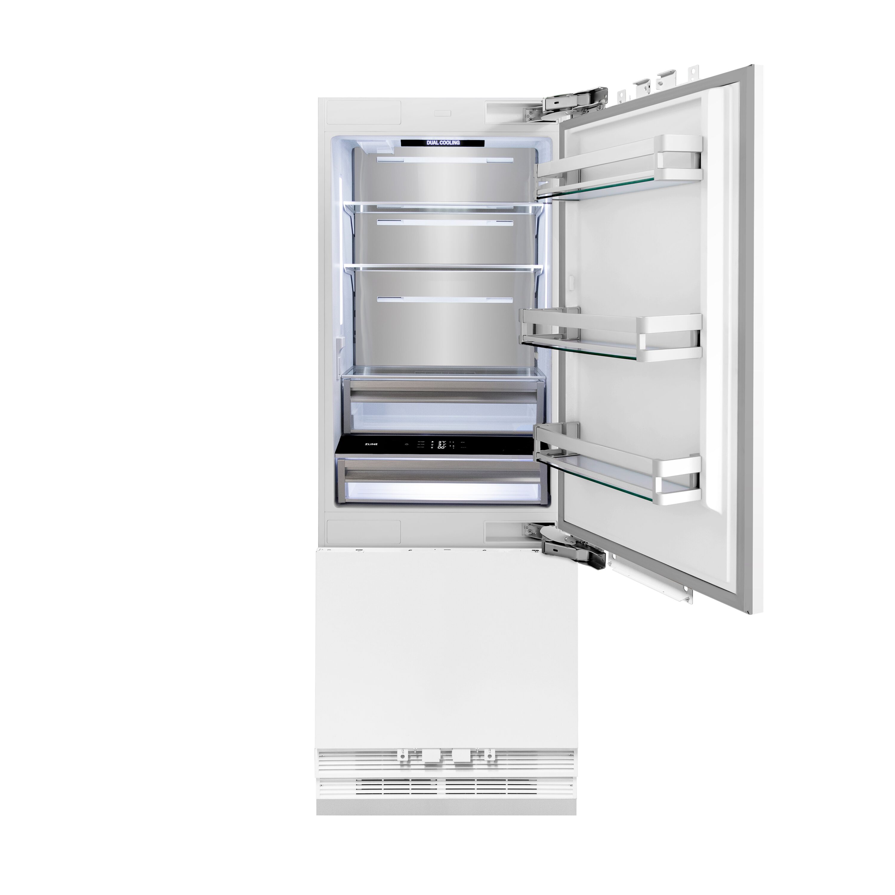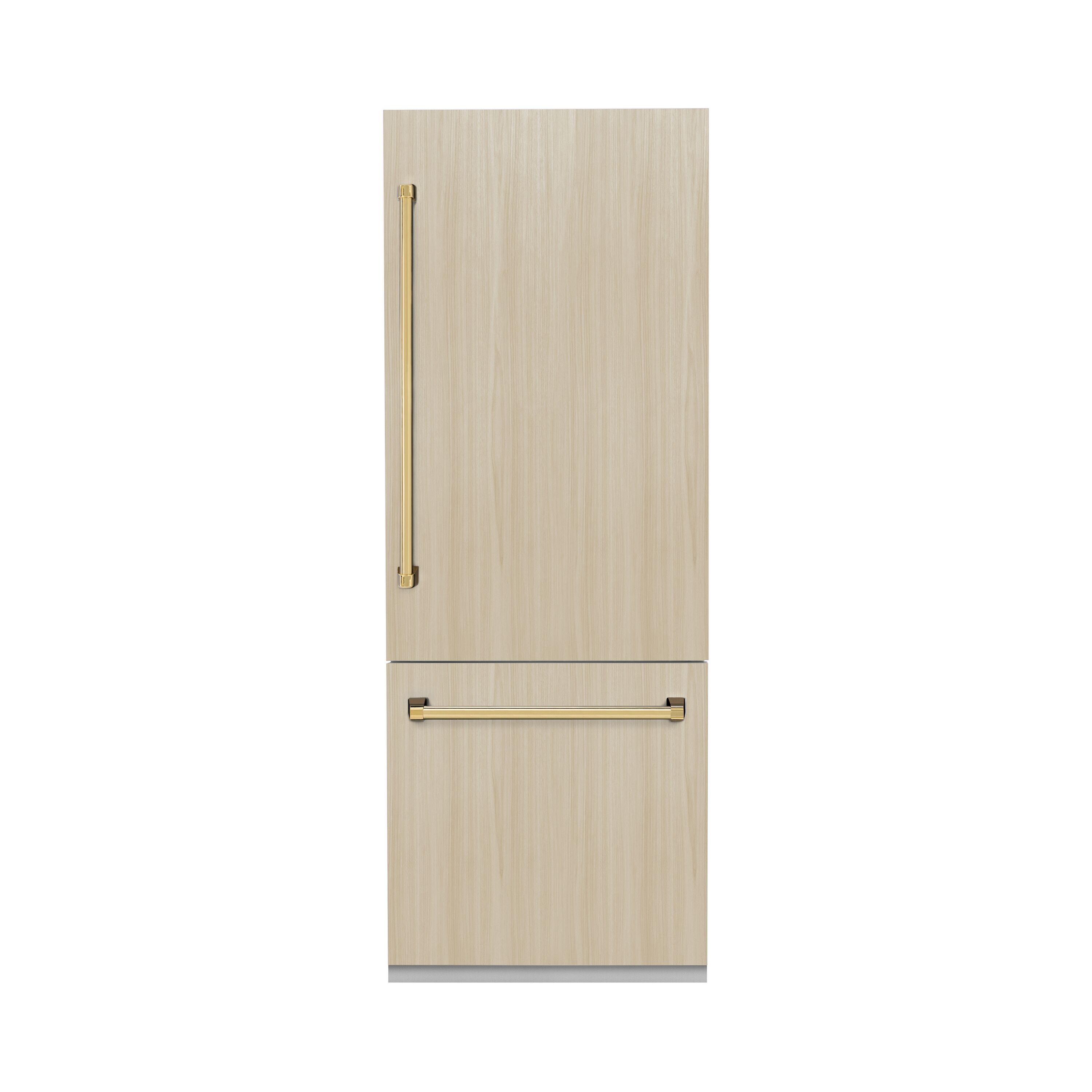 Luxury isn’t meant to be desired – it’s meant to be attainable. The ZLINE Autograph Edition 30 in. 16.1 cu. ft. Panel Ready Built-In Bottom Freezer Refrigerator with Water Dispenser and Ice Maker with Polished Gold Accents (RBIVZ-30-G) provides the ultimate upgrade to the center of your home by pairing premium dual cooling technology with enhanced storage capacity for multiple grocery items. Achieve ZLINE Attainable Luxury® excellence with innovative features designed to enhance your kitchen’s cooling and freezing capability.